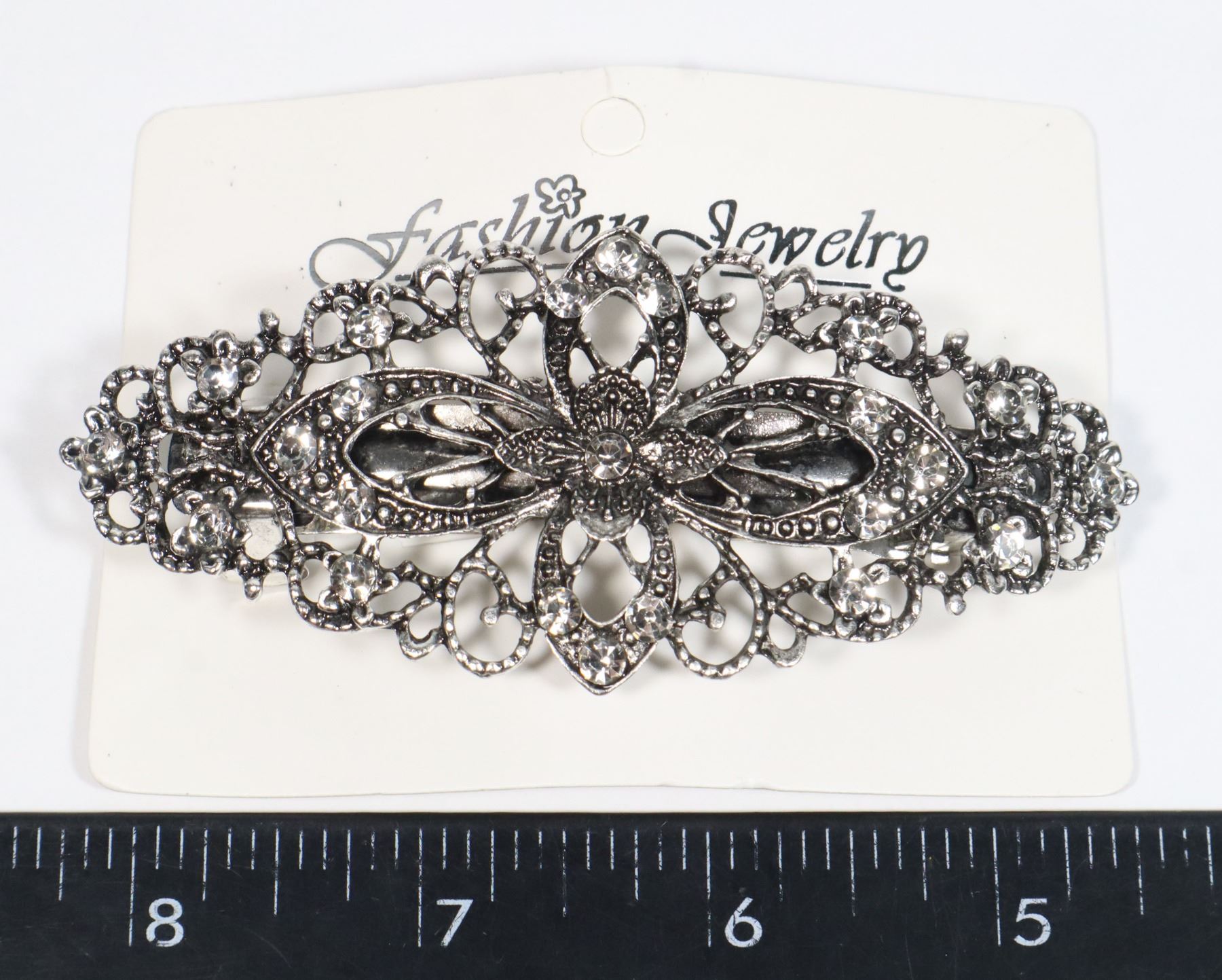 RHINESTONE ACCENTS. ANTIQUE STYLE FRENCH HAIR CLIP.