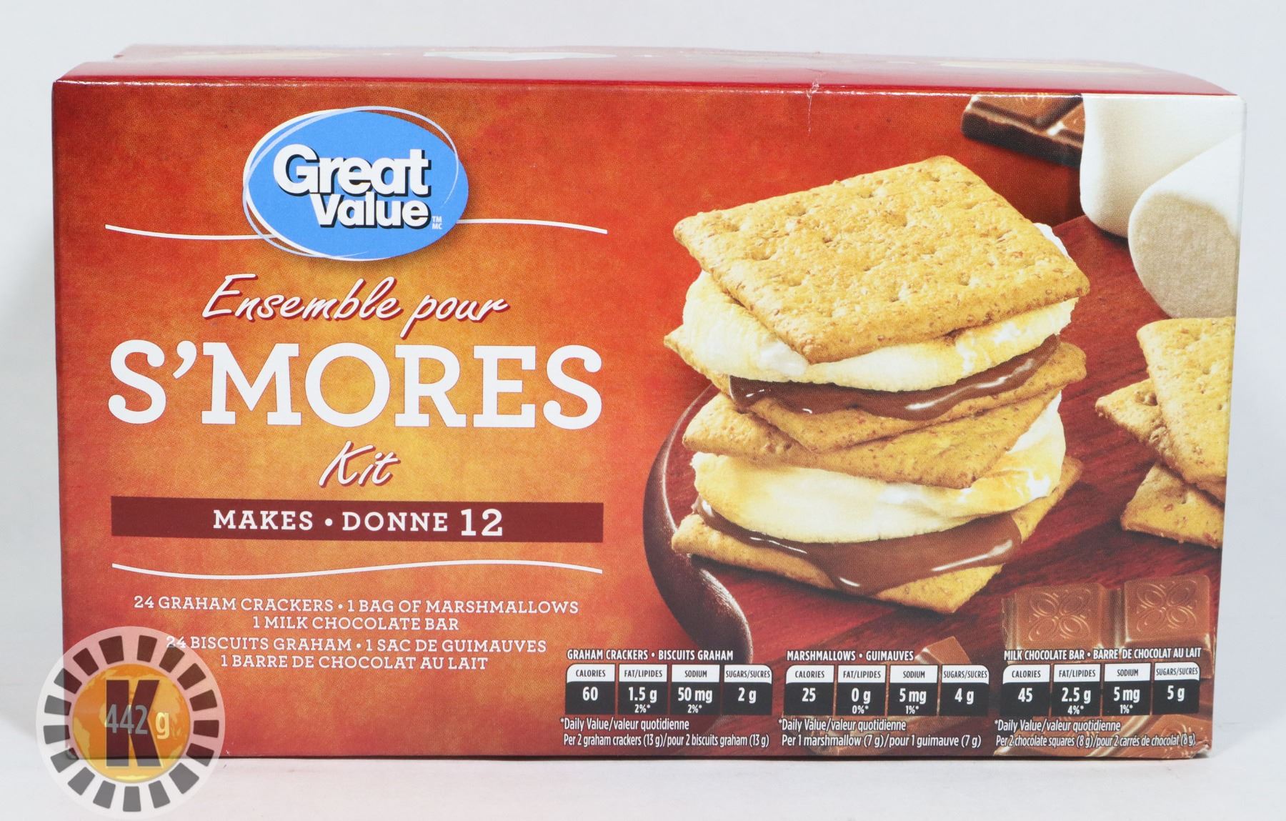 INCLUDES 24 GRAHM CRACKERS, BAG OF MARSHMALLOWS, 1 MILK CHOCOLATE BAR. 442G. BEST BEFORE NOV 30 2022***ITEM(S) LOCATED IN LETHBRIDGE ALBERTA. SMALL ITEMS ONLY ARE AVAILABLE FOR FREE TRANSPORT TO EDMONTON OFFICE (READ AUCTION DETAILS FOR MORE INFORMATION)