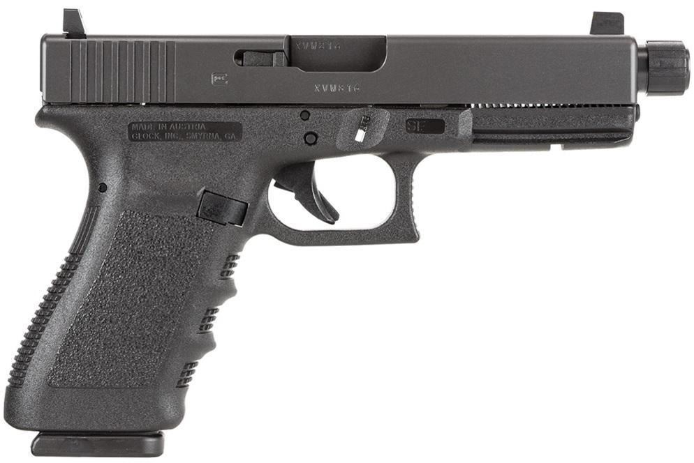 Mfr Items:Glock Category:PISTOLS Mfr Scan:GLK21 Model:G21SF Series:Short Frame Threaded Barrel Action:Double Caliber:45 Automatic Colt Pistol (ACP) Barrel Length:4.6" Capacity:10+1 Safety:Trigger/Firing Pin/Drop Grips:Integral Sights:Fixed Frame Finish:Black Frame Material:Polymer Barrel Type:Threaded Slide Description:Black Case Type:Hard