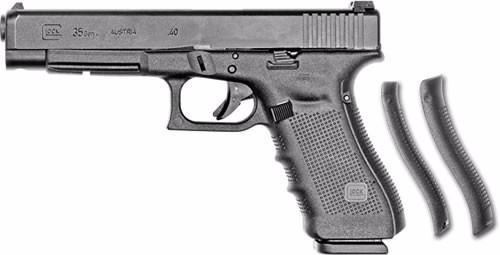 Mfr Items:Glock Category:PISTOLS Mfr Scan:GLK35 Model:G35 Series:Gen 4 Action:Double Caliber:40 Smith & Wesson (S&W) Barrel Length:5.3" Capacity:15+1 Safety:Trigger/Firing Pin/Drop Grips:Black Interchangeable Backstrap Sights:Adjustable Rear Weight:27.5 oz Frame Finish:Black Frame Material:Polymer Barrel Type:Hexagonal Rifled Slide Description:Black Case Type:Hard