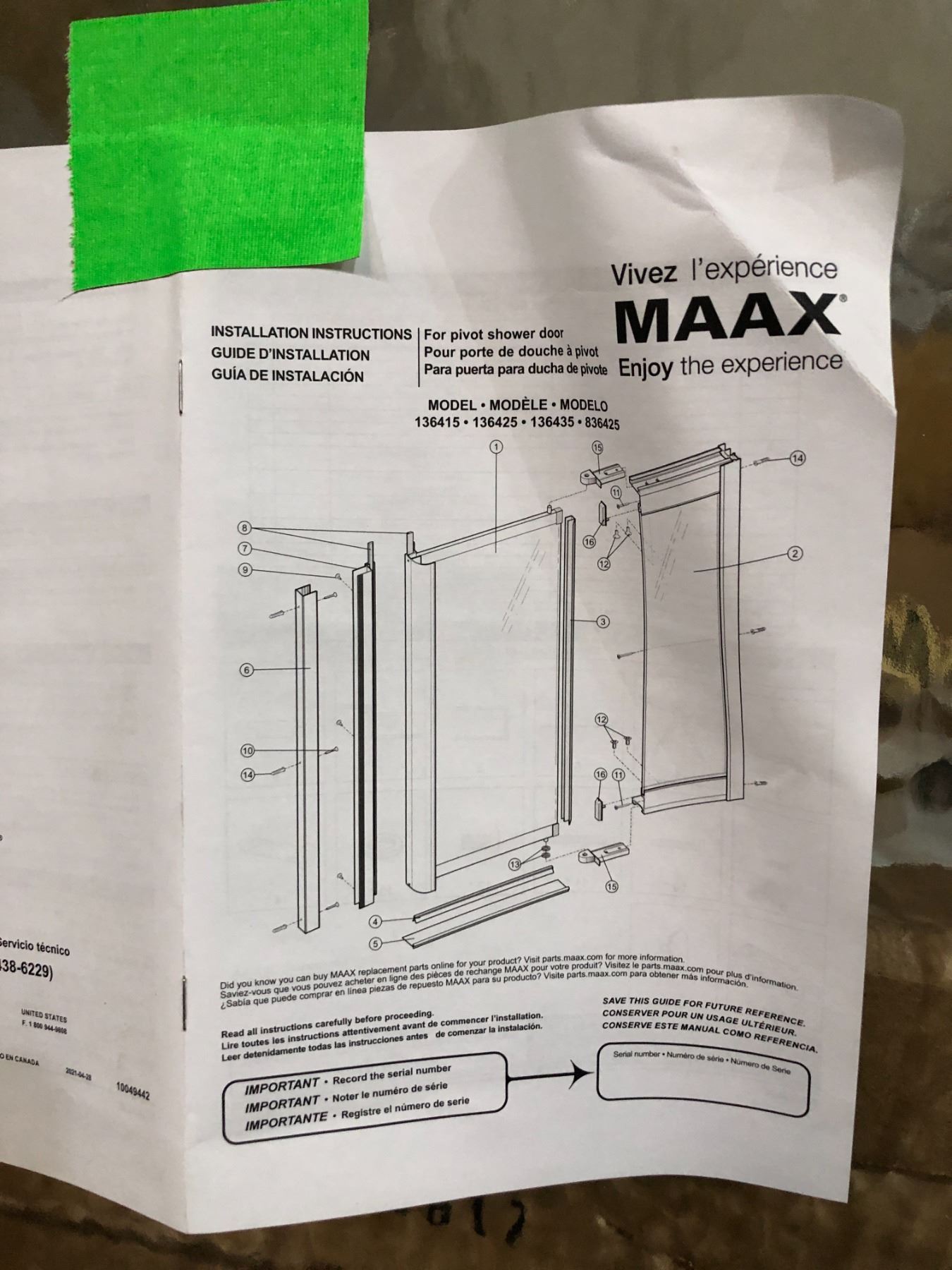 NEW - Group of 4 MAAX Pivot shower doors adjustable 32 1/2" to 37 x 64" - 2 doors per lock - NEW IN BOX