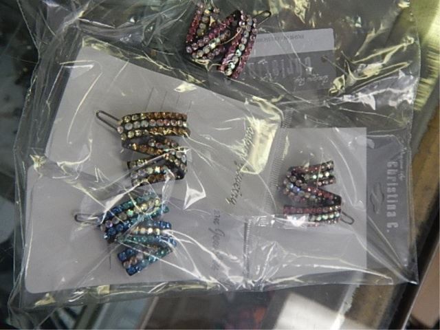 NEW HAIR BOBBY PINS WITH RHINESTONE RIBBONS - 4 PER LOT - 2 PINK - 1 BLUE - 1 GOLD