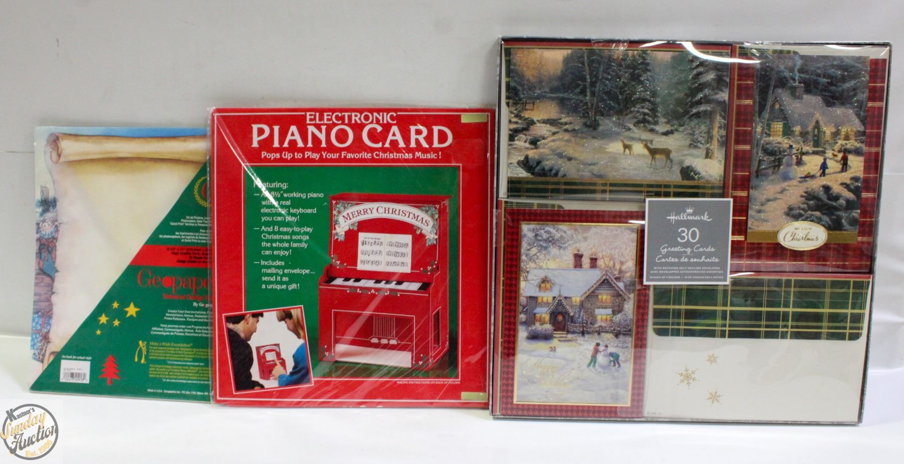 SET THOMAS KINDADE "PAINTERS OF THE NIGHT" W/SEALED GEOPAPER XMAS CARD PRINTER PAPER W/SEALED VINTAGE ELECTRONIC PIANO CARD **ALL ITEMS MUST BE REMOVED BY 5PM SATURDAY, NOVEMBER 15TH 2025. ALL REMAINING ITEMS WILL BE SUBJECT TO A $6.00 PER DAY STORAGE CHARGE. ANY ITEMS REMAINING AFTER MONDAY, DECEMBER 1ST 2025 WILL BE CONSIDERED FORFEITED. NO REFUNDS WILL BE ISSUED FOR FORFEITED ITEMS. TO SCHEDULE A PICK UP APPOINTMENT CLICK HERE
