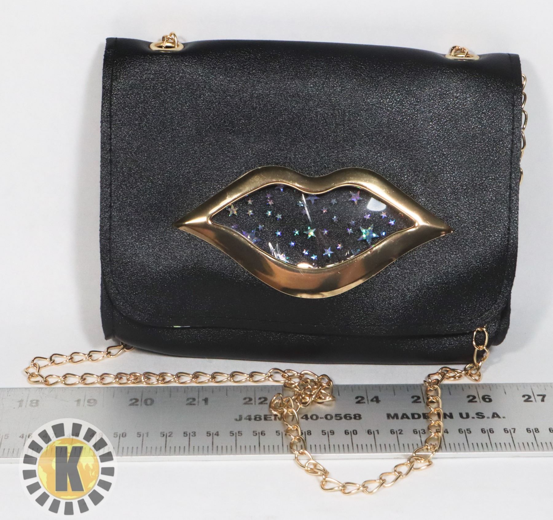 NEW HAND BAG, WITH LIP DESIGN BLACK