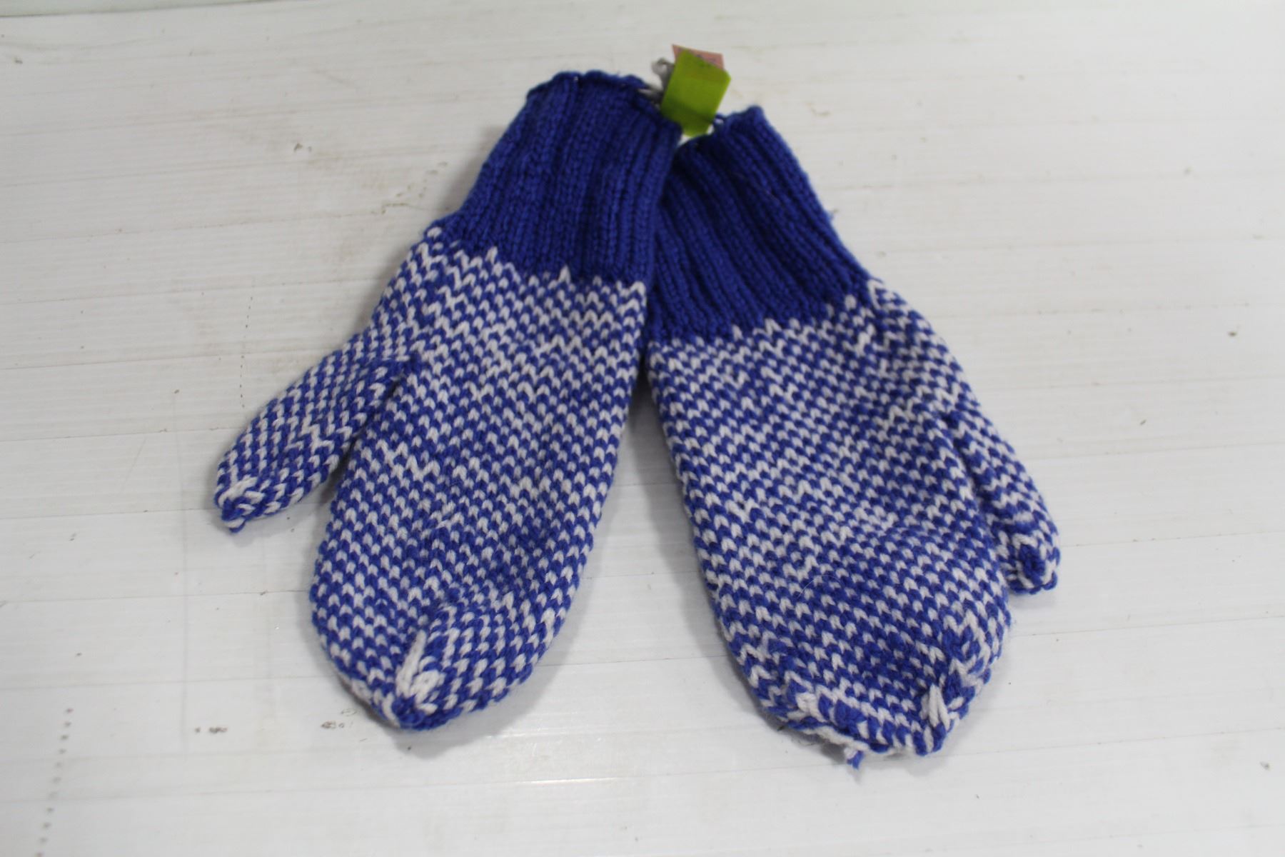 NEW HAND KNIT MITTENS SIZE LRG; BLUE & WHIITE