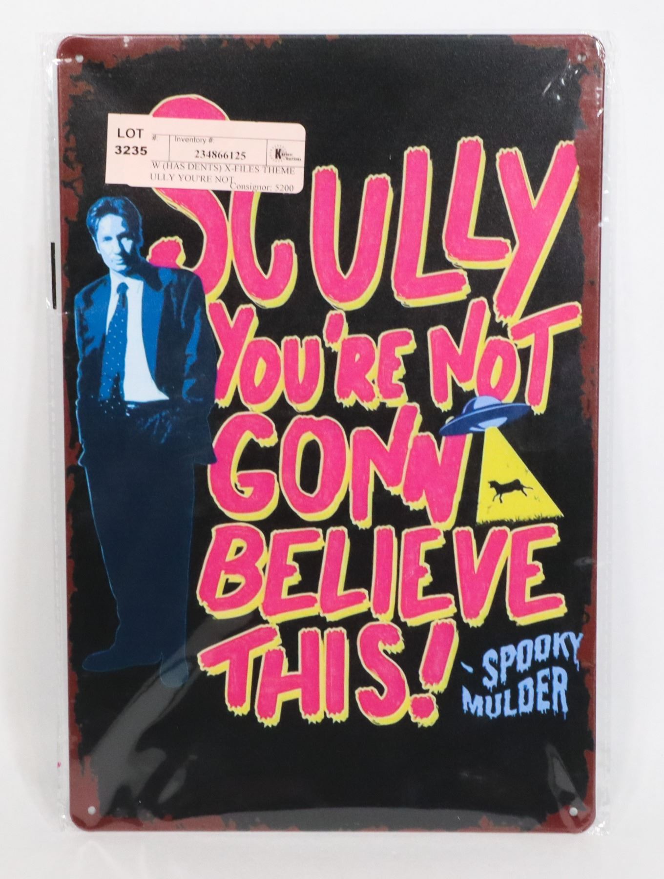 GONNA BELIEVE THIS! -SPOOKY MULDER METAL SIGN PRE-DRILLED HOLES FOR HANGING APPROX. 8"X12"