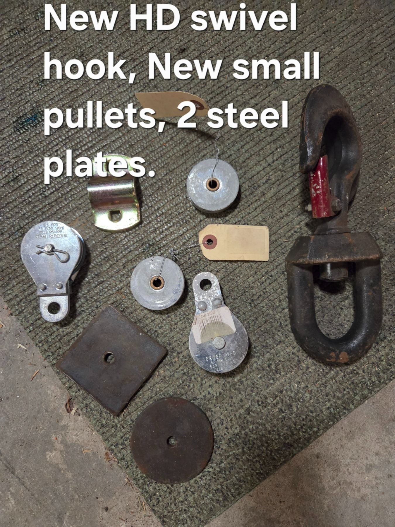 NEW- HD Swivel Hook/New Small Pulleys/Steel Plates
