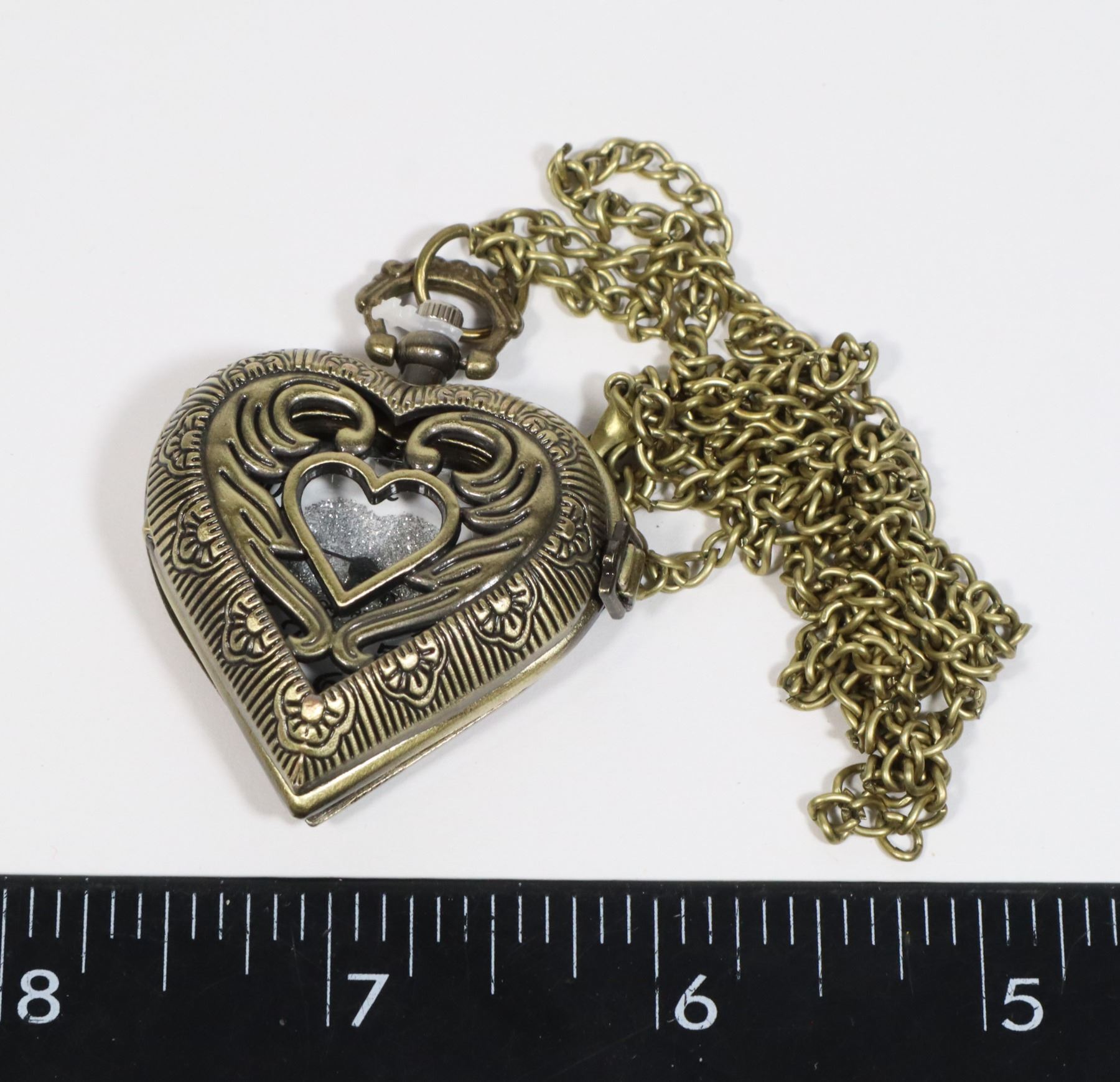 NEW HEART LOCKET DESIGN POCKET WATCH WITH CHAIN