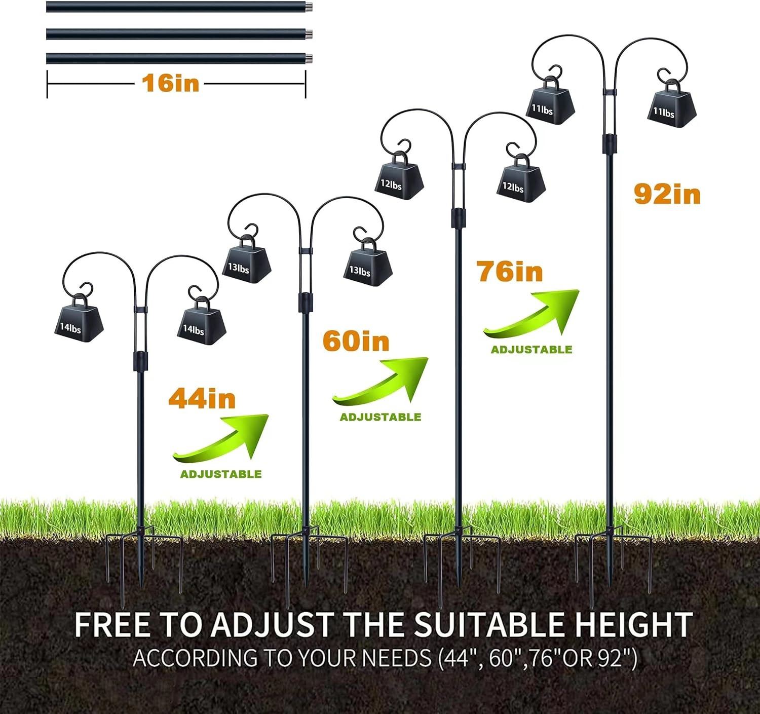 DOUBLE SHEPHERDS HOOKS, 5 BASE PRONGS, ADJUSTABLE HEIGHT, AMZ SES