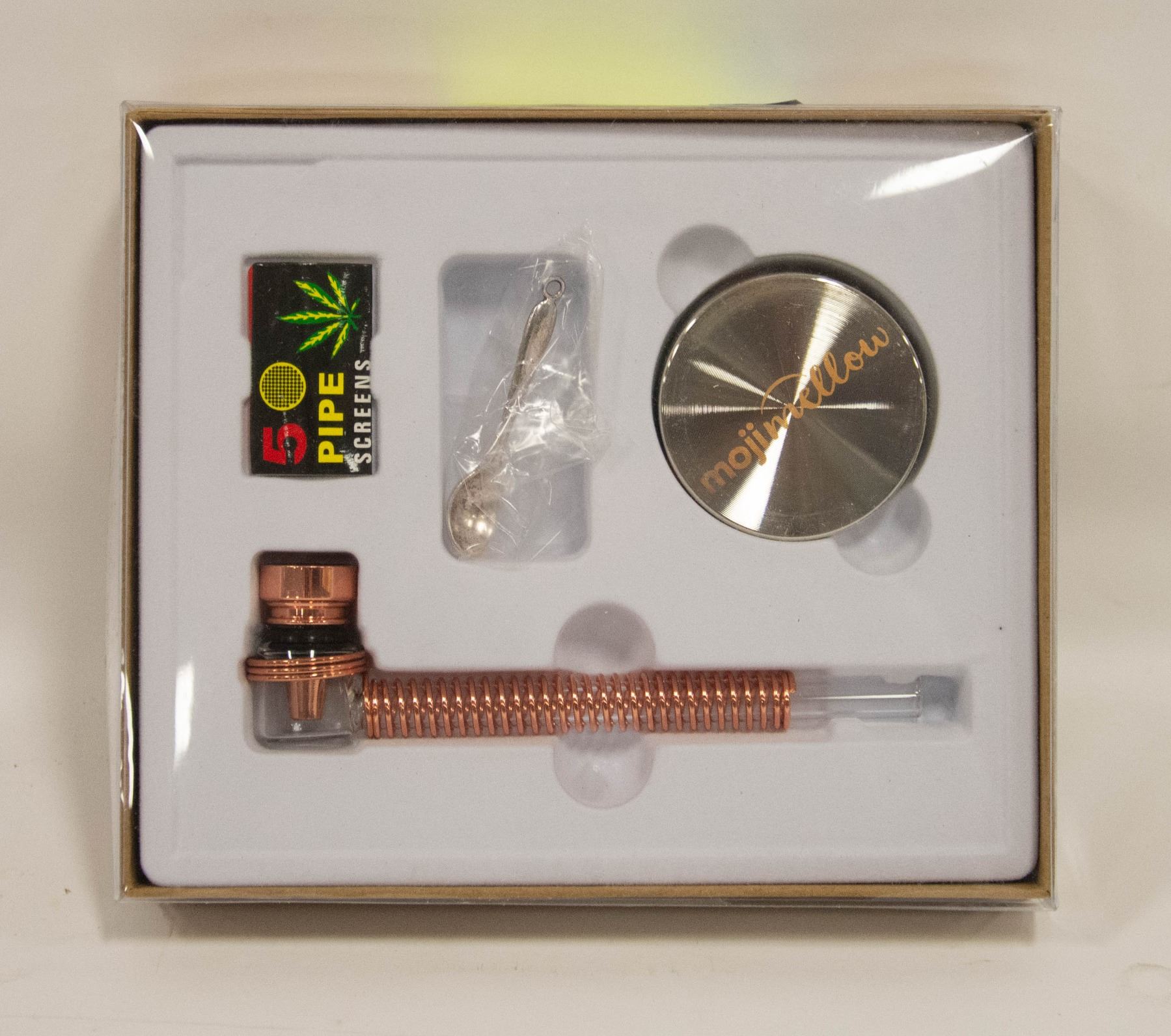 NEW HERBAL GLASS PIPE SET WITH GRINDER & SPOON