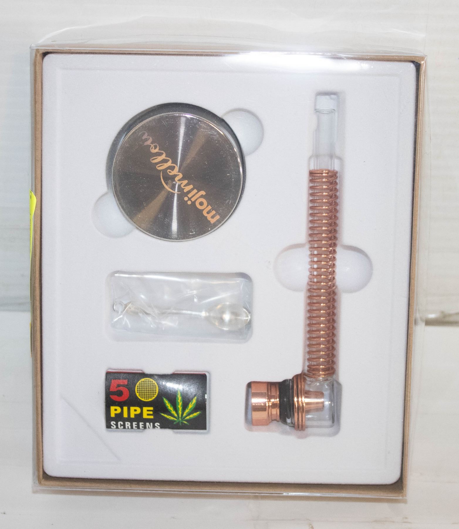 NEW HERBAL GLASS PIPE WITH GRINDER & SPOON
