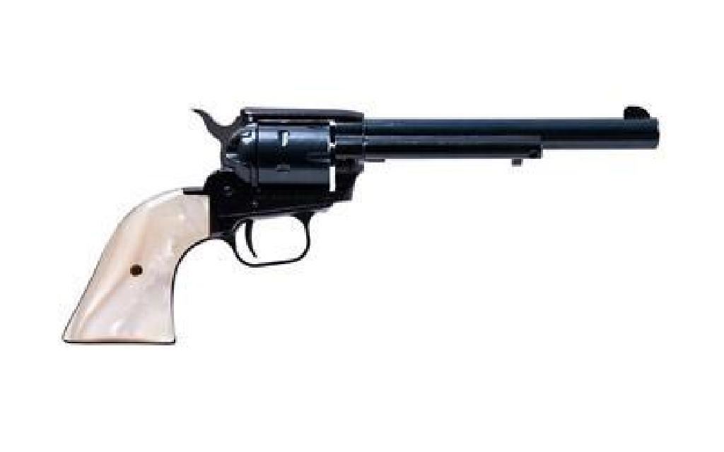 UPC Code: 727962500361 Manufacturer: Heritage Model: Rough Rider Action: Revolver Type: Single Action Army Caliber: 22WMR Caliber: 22LR Barrel Length: 6.5" Frame/Material: Alloy Finish/Color: Blue Grips/Stock: Pearl Capacity: 6Rd Hand: Right Hand Manufacturer Wt: 33.4oz Sights: Fixed Sights Manufacturer Part #: 22MB6PRL