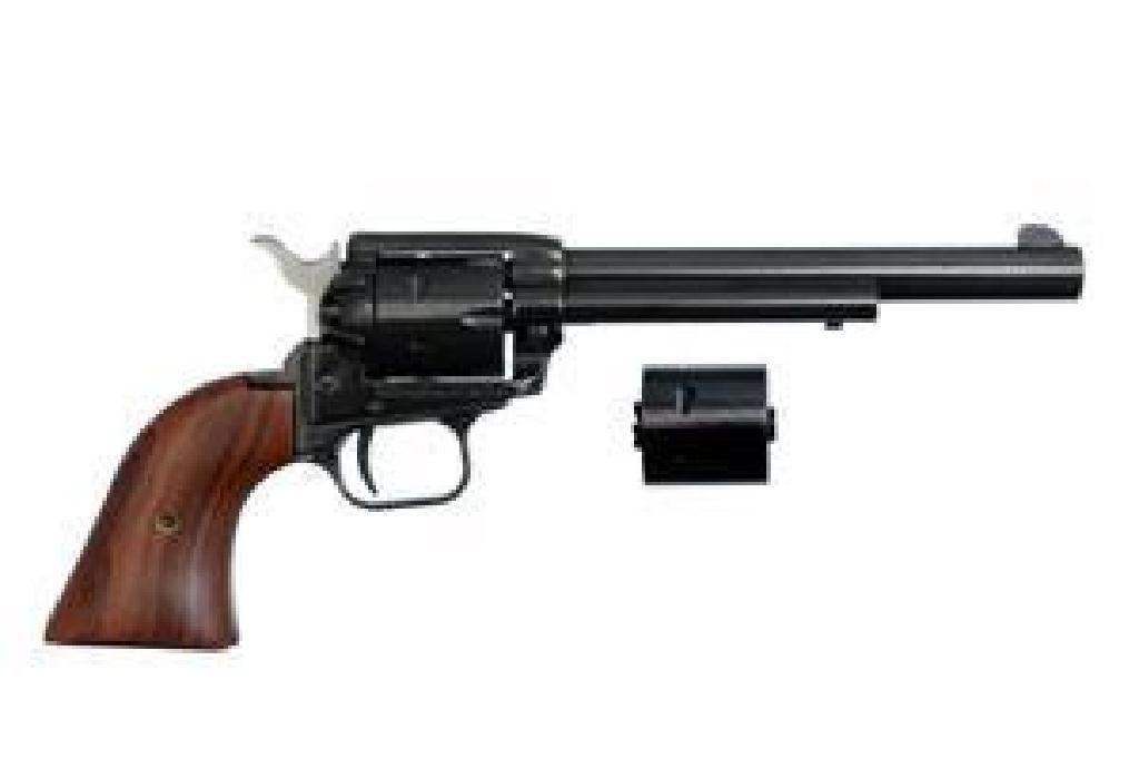 Mfr Items:Heritage Mfg Category:REVOLVER Type:Revolver Action:Single Caliber:22 Long Rifle/22 Winchester Magnum Rimfire (WMR) Barrel Length:6.5" Capacity:6 Hammer Style:Spurred Grips:Cocobolo Sights:Fixed Front, Notched Rear Weight:33.4 oz Frame Description:Blued Aluminum Alloy Frame Size:Standard Cylinder Finish:Blued Barrel Finish:Blued OAL:11.79"