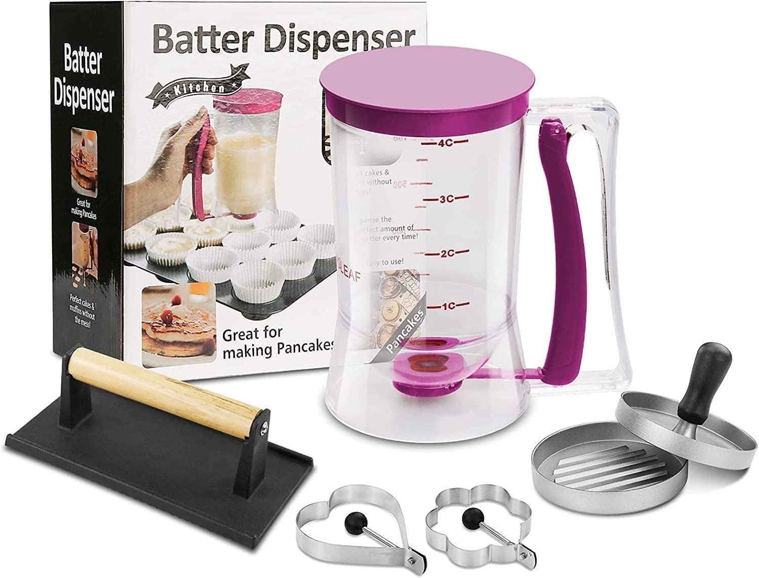 PANCAKE BATTER DISPENSER, WOODEN HANDLED MEET PRESS, 3 IN 1 HAMBURGER PATTY PRESS, 2 PCS EGG RINGS **ALL ITEMS MUST BE REMOVED BY 5PM MONDAY, JULY 3RD, 2023. ALL REMAINING ITEMS WILL BE SUBJECT TO A $6.00 PER DAY STORAGE CHARGE. ANY ITEMS REMAINING AFTER MONDAY, JULY 17TH, 2023 WILL BE CONSIDERED FORFEITED. NO REFUNDS WILL BE ISSUED FOR FORFEITED ITEMS.** TO SCHEDULE A PICK UP APPOINTMENT CLICK HERE