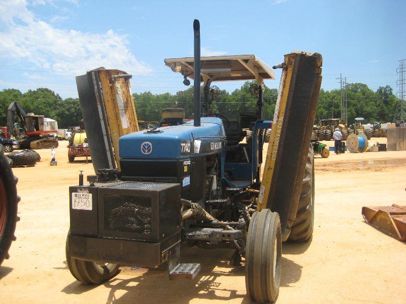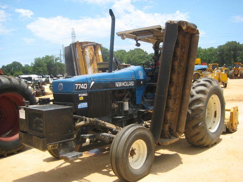 NEW HOLLAND 7740 FARM TRACTOR, S/N 067373B, 3 PTH, LIVE PTO, CANOPY, P/S, ALAMO SIDE BOOM & REAR MOWERS