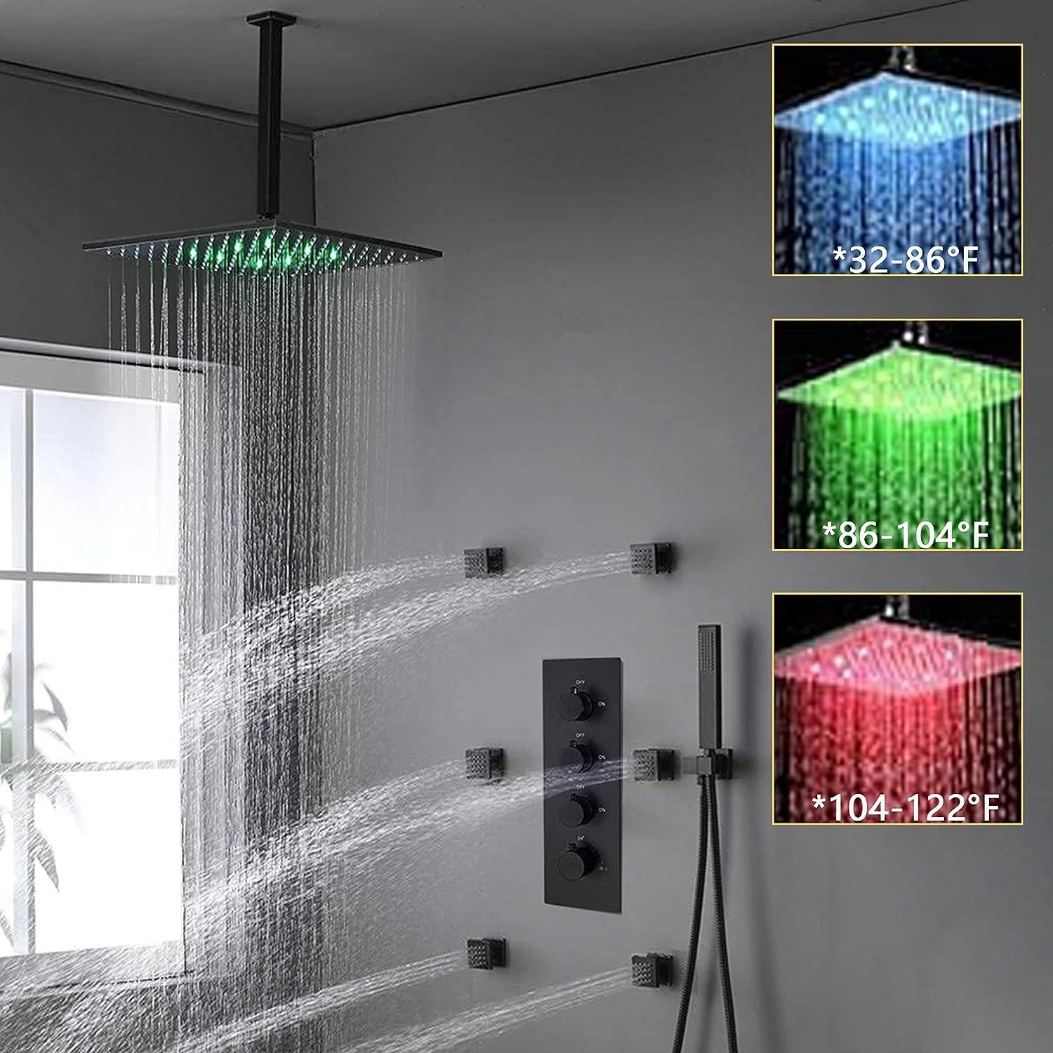 16 INCH LED RAIN SHOWER HEAD, FAUCET BODY SPRAY COMBO SET, LARGE FLOW, CAN USE ALL FUNCTIONS AT A TIME, AMZ SES, AMZ MSRP. $979.75 **ALL ITEMS MUST BE REMOVED BY 5PM SATURDAY, SEPTEMBER 9TH 2023. ALL REMAINING ITEMS WILL BE SUBJECT TO A $6.00 PER DAY STORAGE CHARGE. ANY ITEMS REMAINING AFTER MONDAY, SEPTEMBER 25TH, 2023 WILL BE CONSIDERED FORFEITED. NO REFUNDS WILL BE ISSUED FOR FORFEITED ITEMS. TO SCHEDULE A PICK UP APPOINTMENT CLICK HERE