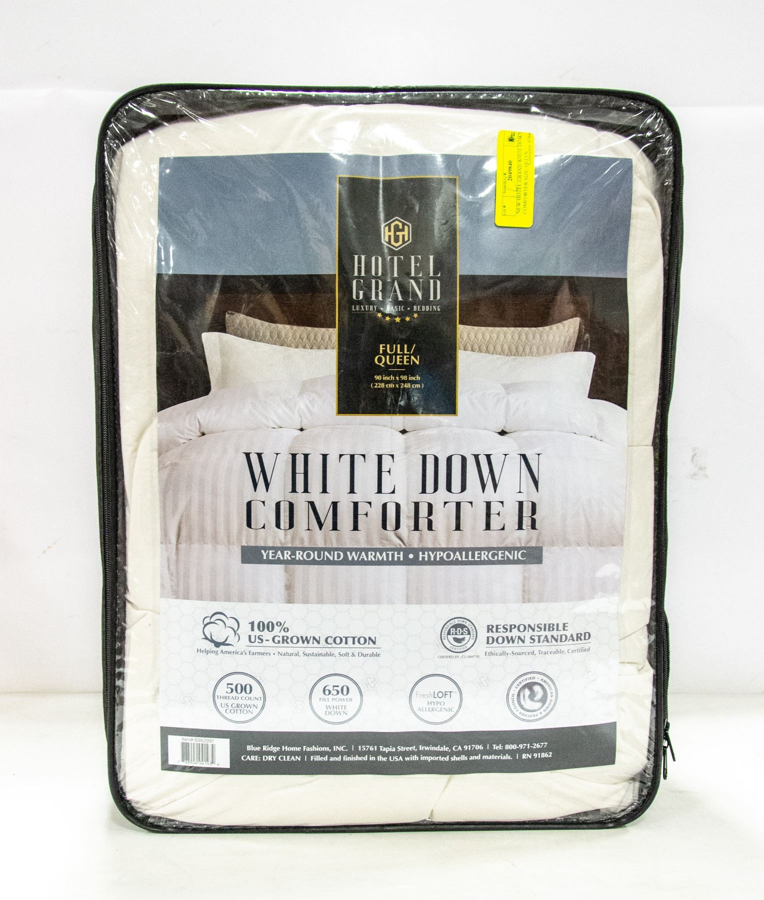 500 THREAD COUNT. 650 FILL POWER, WHITE DOWN. 100% US GROWN COTTON **ALL ITEMS MUST BE REMOVED BY 5PM SATURDAY, NOVEMBER 26TH, 2022. ALL REMAINING ITEMS WILL BE SUBJECT TO A $6.00 PER DAY STORAGE CHARGE. ANY ITEMS REMAINING AFTER MONDAY, DECEMBER 5, 2022 WILL BE CONSIDERED FORFEITED. NO REFUNDS WILL BE ISSUED FOR FORFEITED ITEMS. TO SCHEDULE A PICK UP APPOINTMENT CLICK HERE