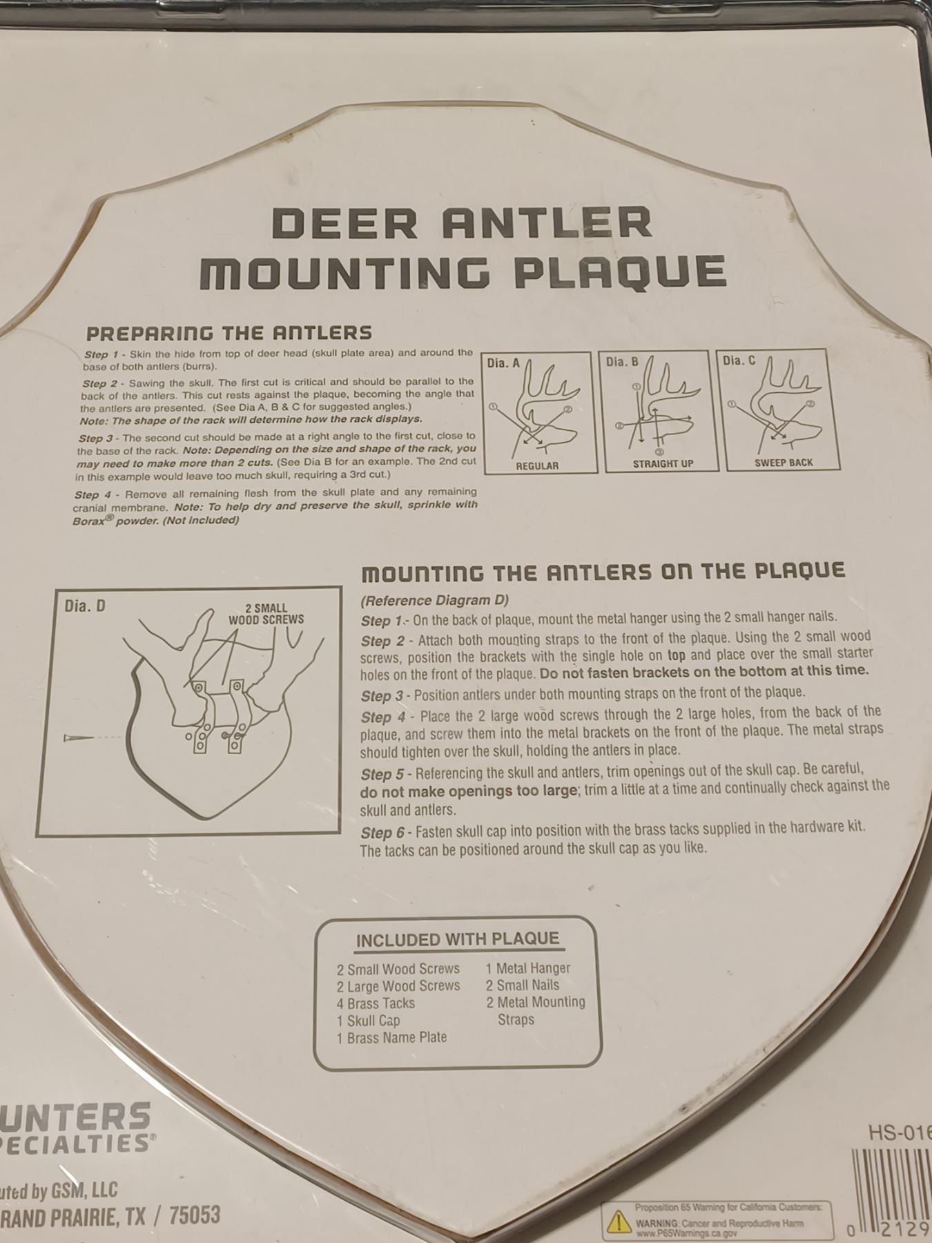 NEW HS DEER ANTLER MOUNTING PLAQUE
