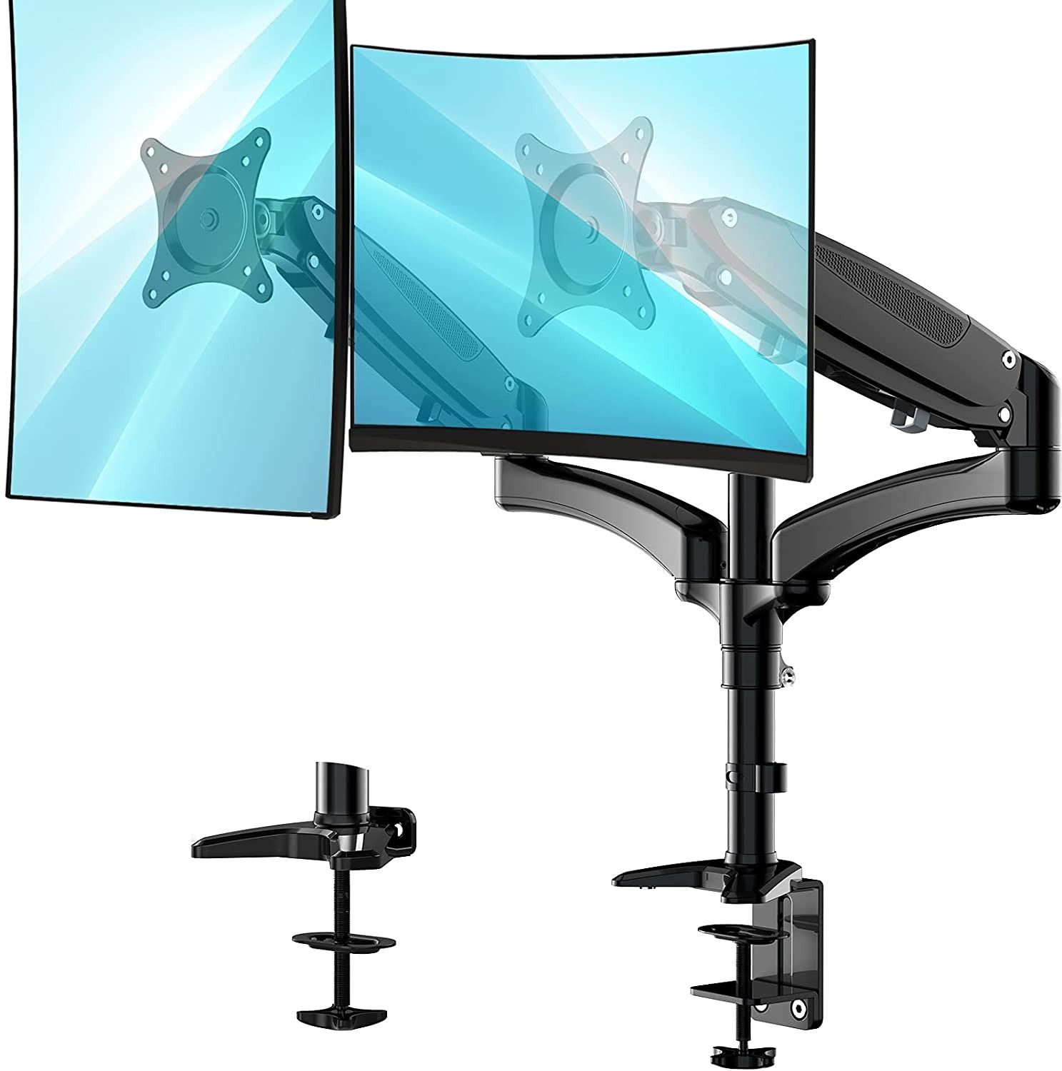 SCREENS 15 - 27", DOUBLE ARTICULATING ARMS, VESA BRACKET WITH C-LAMP, BOLT THROUGH GROMMET MOUNTING, PARTS CONFIRMED, MANUAL INCLUDED, AMZ SES