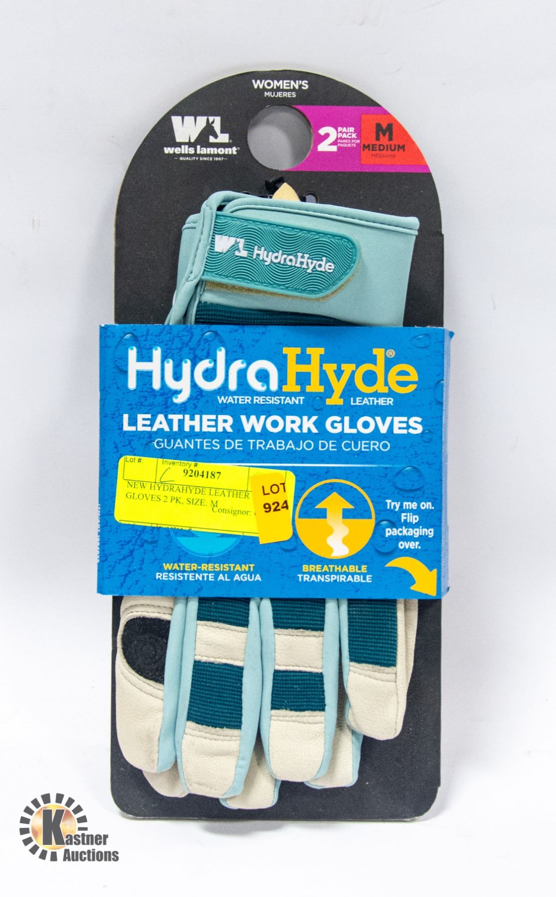 NEW HYDRAHYDE LEATHER WORK GLOVES 2 PK, SIZE: M