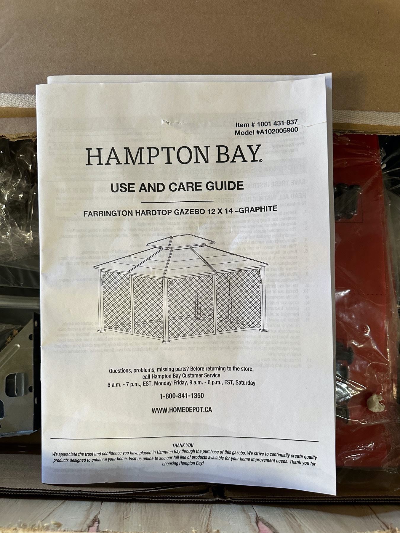 NEW - Hampton Bay - Farrington Hardtop Gazebo 12' x 14' - Graphite - NEW IN BOX