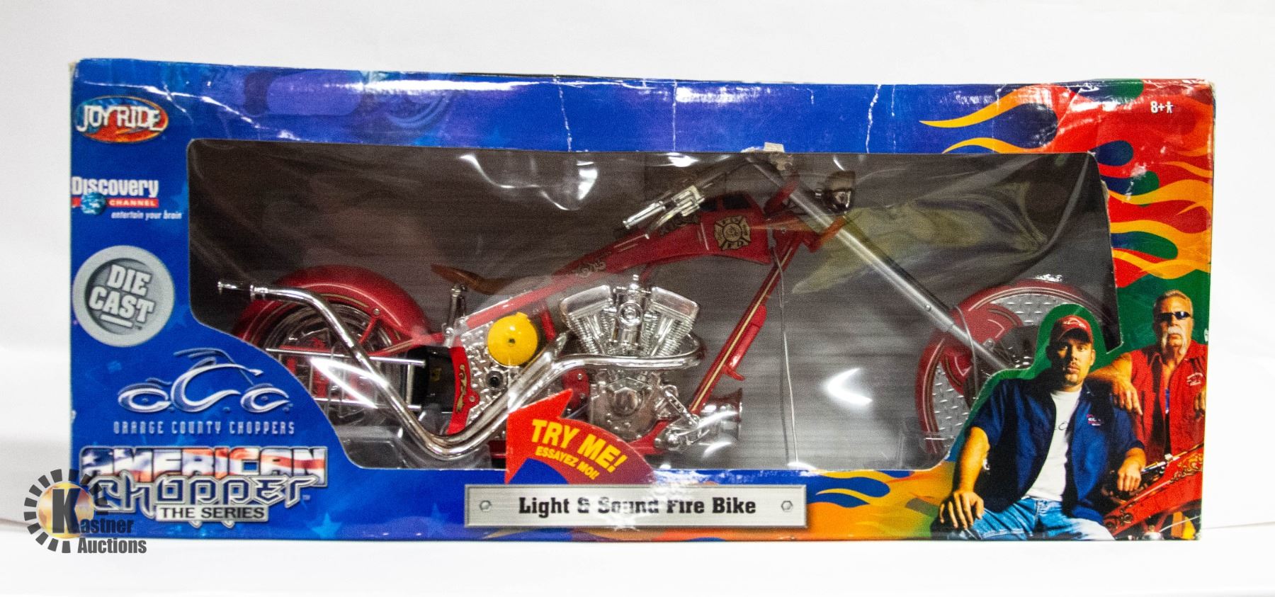 AMERICAN CHOPPER LIGHT & SOUND FIRE BIKE DIECAST **ALL ITEMS MUST BE REMOVED BY 5PM SATURDAY, OCTOBER 12TH 2024. ALL REMAINING ITEMS WILL BE SUBJECT TO A $6.00 PER DAY STORAGE CHARGE. ANY ITEMS REMAINING AFTER MONDAY, OCTOBER 27TH 2024 WILL BE CONSIDERED FORFEITED. NO REFUNDS WILL BE ISSUED FOR FORFEITED ITEMS. TO SCHEDULE A PICK UP APPOINTMENT CLICK HERE