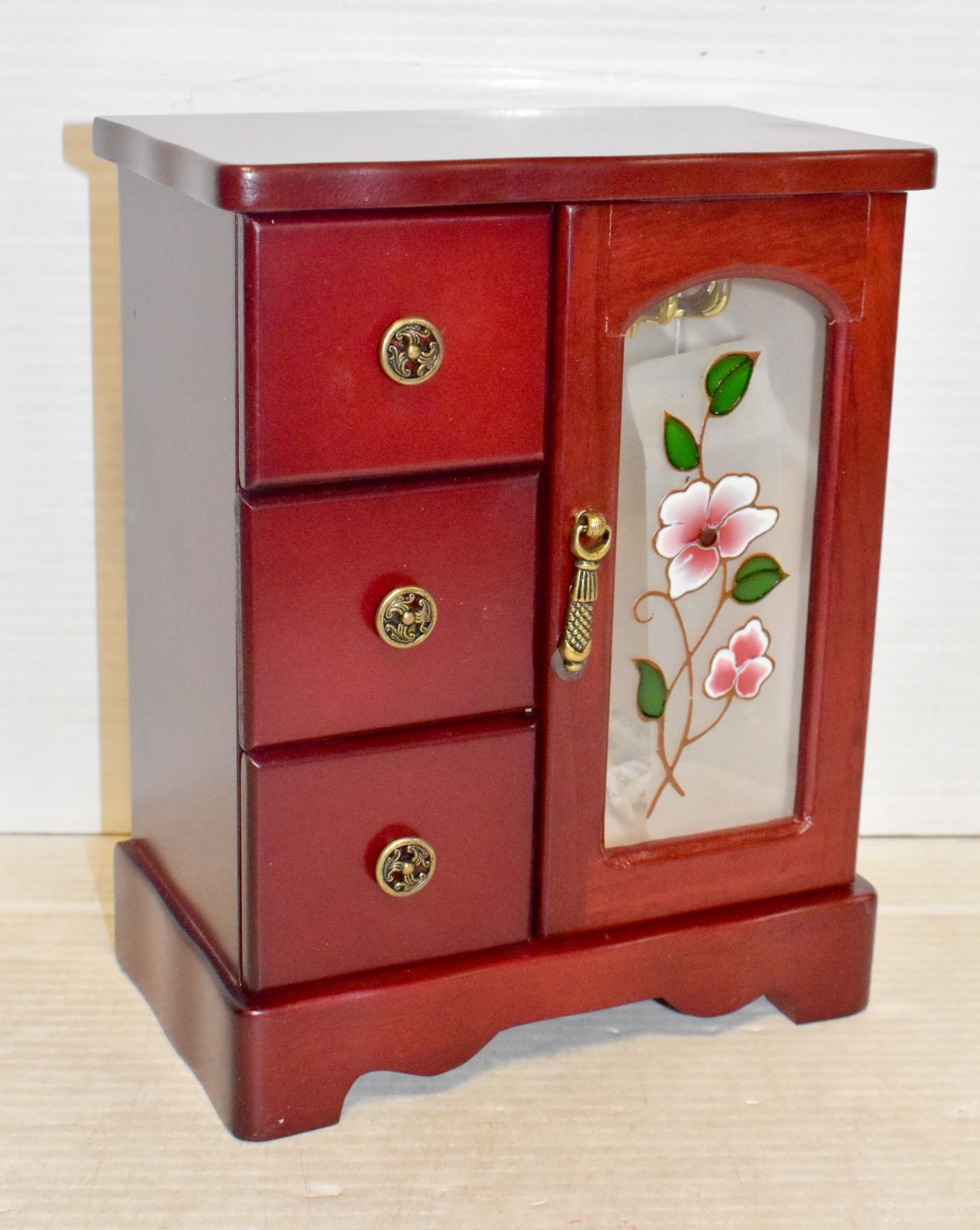 NEW IN BOX CHERRY FINISH WOODEN JEWELRY BOX