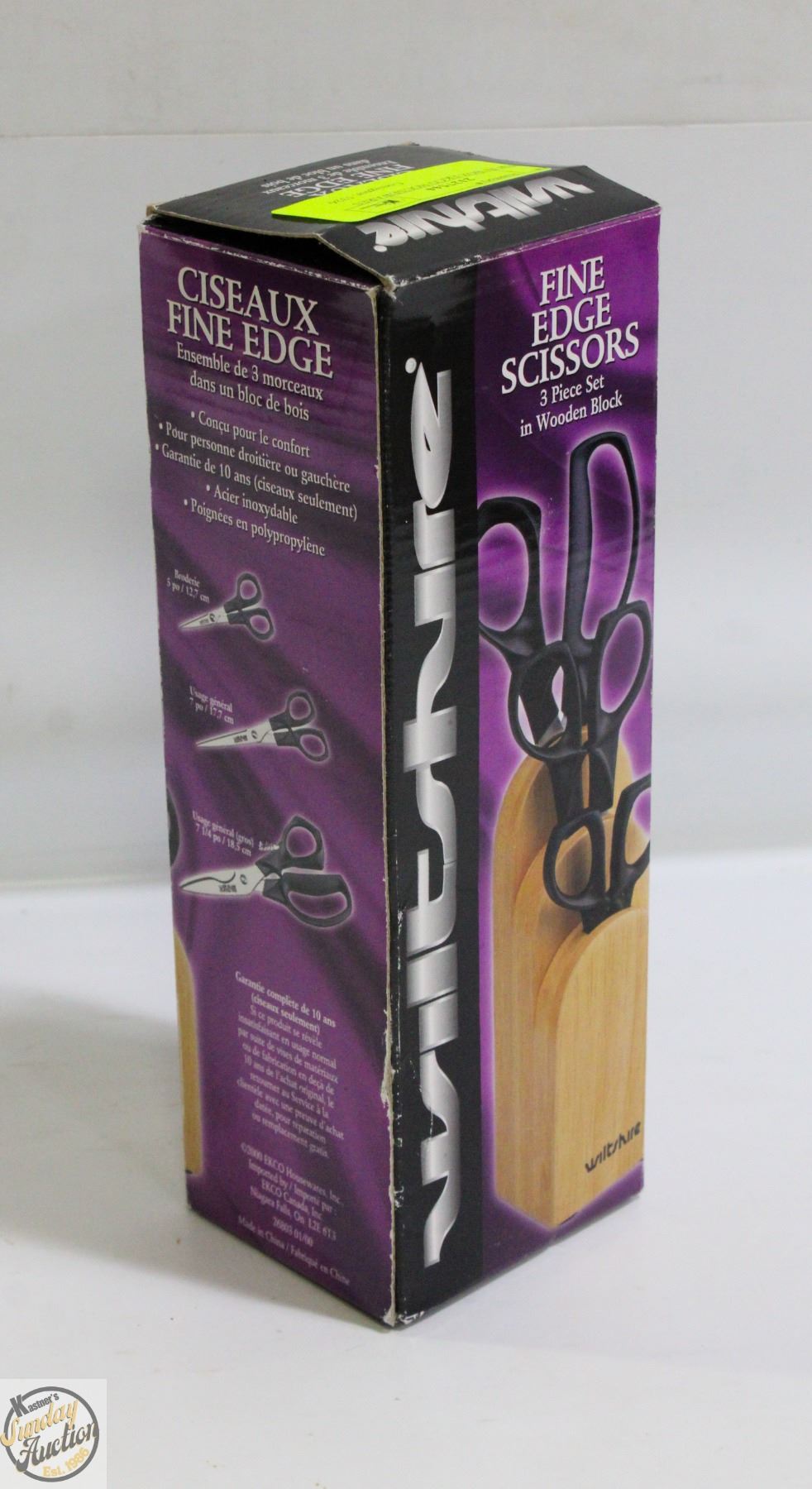 FINE EDGE SCISSOR'S 3-PC SET IN WOOD BLOCK **ALL ITEMS MUST BE REMOVED BY 5PM SATURDAY, NOVEMBER 15TH 2025. ALL REMAINING ITEMS WILL BE SUBJECT TO A $6.00 PER DAY STORAGE CHARGE. ANY ITEMS REMAINING AFTER MONDAY, DECEMBER 1ST 2025 WILL BE CONSIDERED FORFEITED. NO REFUNDS WILL BE ISSUED FOR FORFEITED ITEMS. TO SCHEDULE A PICK UP APPOINTMENT CLICK HERE