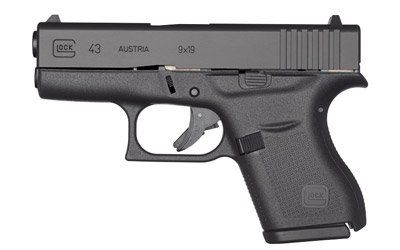 Manufacturer: Glock Model: 43 Action: Semi-automatic Type: Double Action Only Size: Sub Compact Caliber: 9MM Barrel Length: 3.25" Frame/Material: Polymer Finish/Color: Matte Capacity: 6Rd Accessories: 1-Extended Mag, 1-Flat Bottomed Mag, Mag Loader Sights: Fixed Sights Manufacturer Part #: PI4350201 rsr