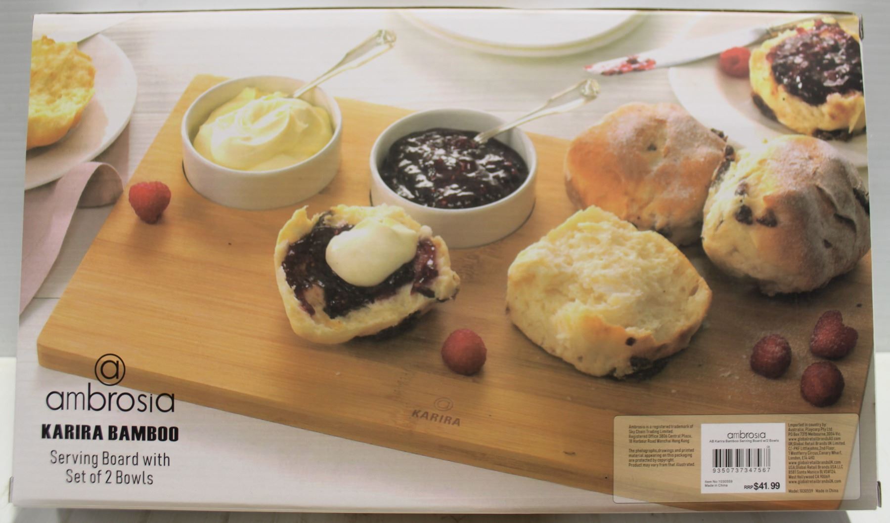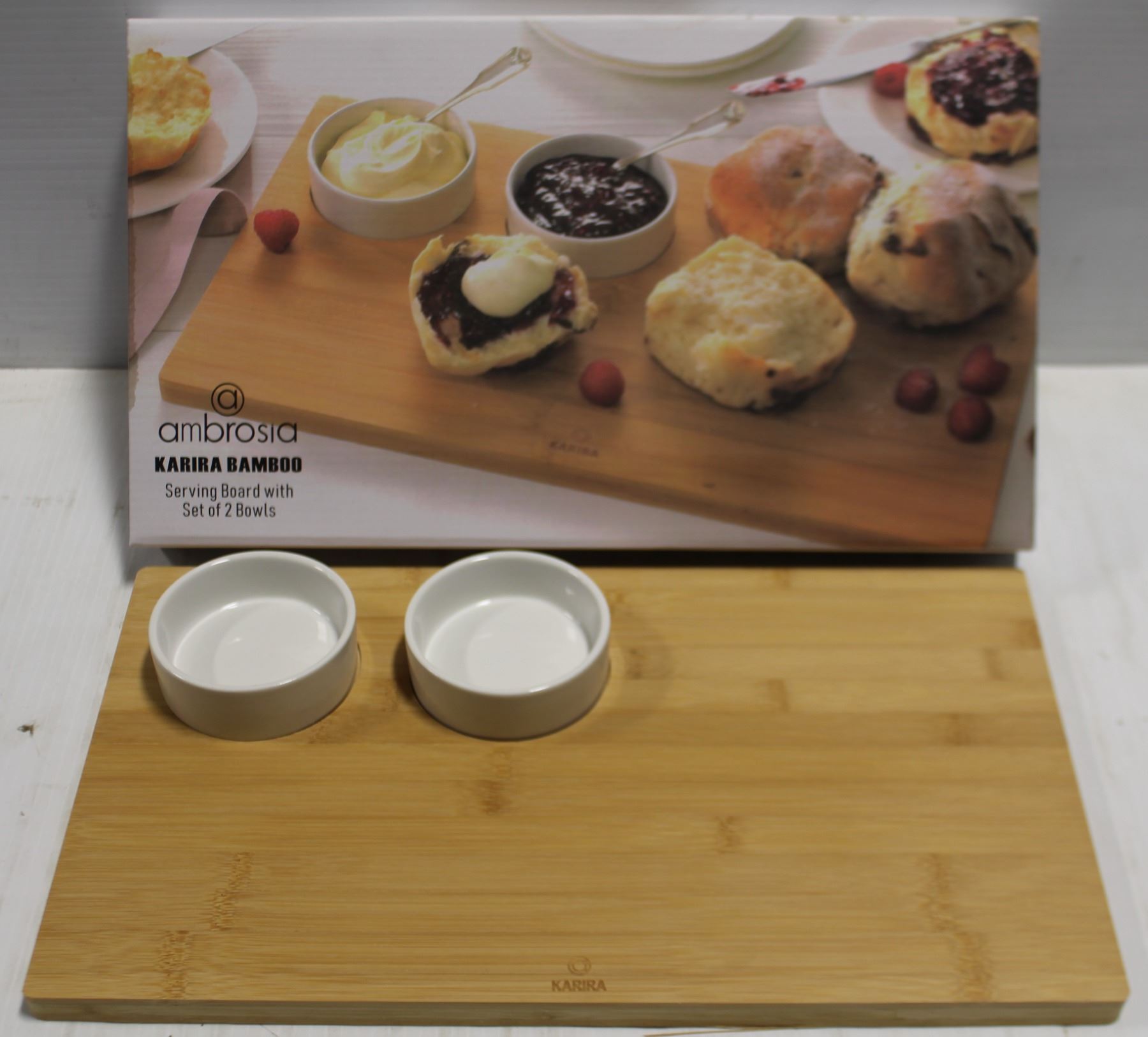 NEW IN BOX KARIRA BAMBOO SERVING BOARD W/ BOWLS