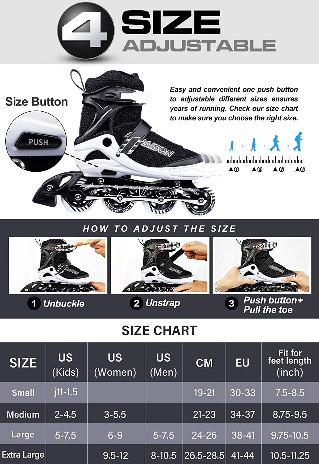 ADJUSTABLE SIZE, MEDIUM WITH ALL ACCESSORIES SIZE 2-4.5US