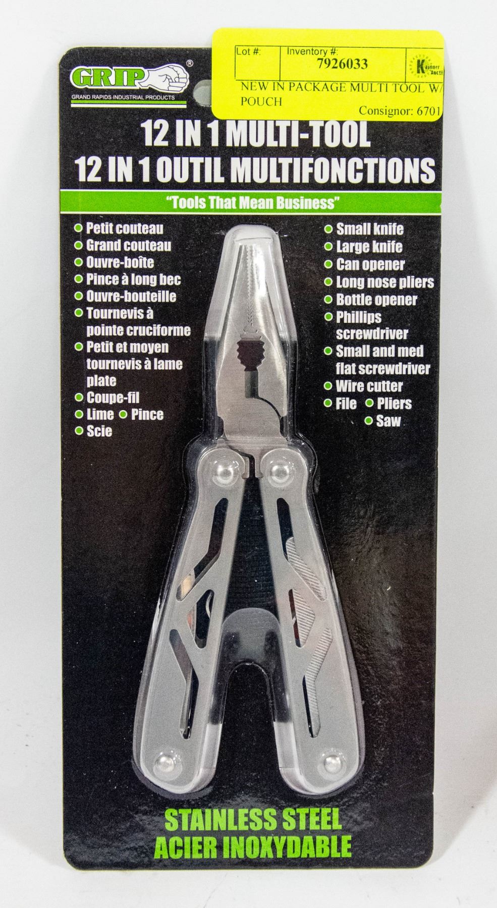 NEW IN PACKAGE MULTI TOOL W/ POUCH - STAINLESS STEEL **ALL ITEMS MUST BE REMOVED BY 5PM SATURDAY, JANUARY 21ST 2023. ALL MAGIC SPACE ITEMS MUST BE REMOVED BY WEDNESDAY, JANUARY 18TH AND ARE LOCATED AT 9058-22 AVENUE SW #102. **ALL REMAINING ITEMS WILL BE SUBJECT TO A $6.00 PER DAY STORAGE CHARGE. ANY ITEMS REMAINING AFTER MONDAY, FEBRUARY 6TH, 2023 WILL BE CONSIDERED FORFEITED. NO REFUNDS WILL BE ISSUED FOR FORFEITED ITEMS. TO SCHEDULE A PICK UP APPOINTMENT CLICK HERE