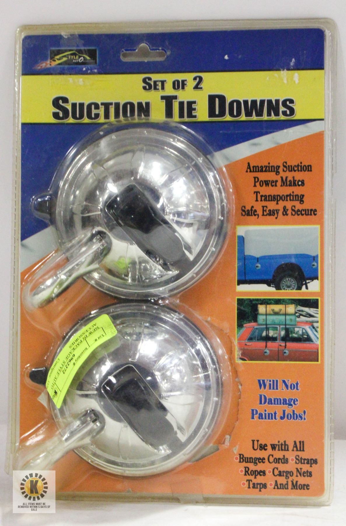 2 PACK SUCTION TIE DOWNS **ALL ITEMS MUST BE REMOVED BY 5PM SATURDAY, APRIL 3RD 2025. ALL REMAINING ITEMS WILL BE SUBJECT TO A $6.00 PER DAY STORAGE CHARGE. ANY ITEMS REMAINING AFTER MONDAY, MAY 19TH 2025 WILL BE CONSIDERED FORFEITED. NO REFUNDS WILL BE ISSUED FOR FORFEITED ITEMS. TO SCHEDULE A PICK UP APPOINTMENT CLICK HERE