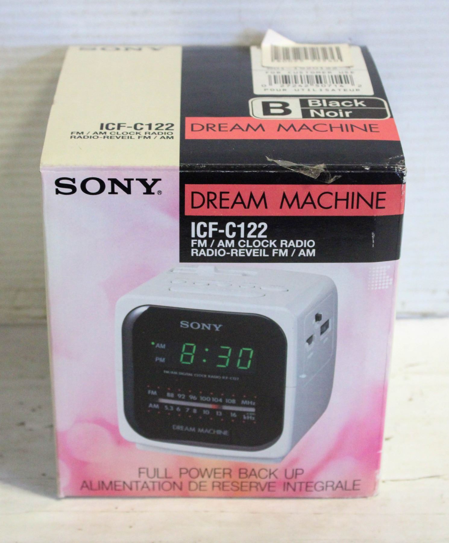 NEVER USED, VTG 1980'S/90'S, TESTED & WORKS, # ICF-C122, AM/FM, WITH INSTRUCTIONS, SQUARE CUBE, WHITE
