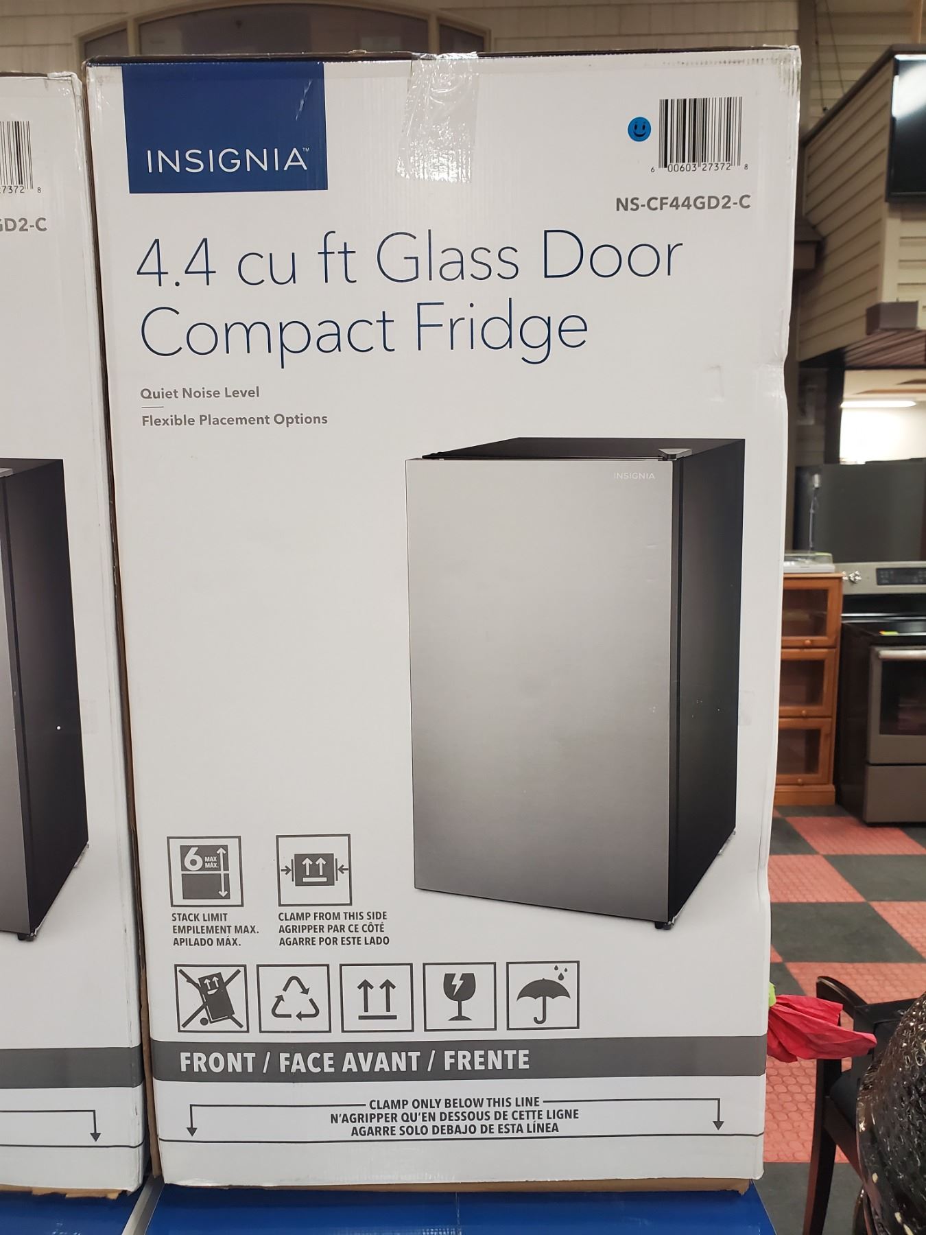 NEW INSIGNIA 4.4 CU FT GLASS DOOR COMPACT FRIDGE