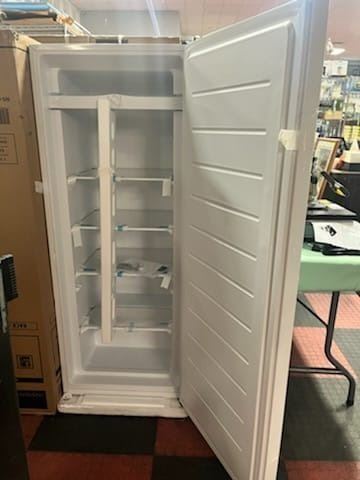 WITH REVERSIBLE DOOR HINGES 56 3/10" HEIGHT, 22.4" DEPTH, 21.7" WIDTH. 30 DAY EXCHANGE WARRANTY.