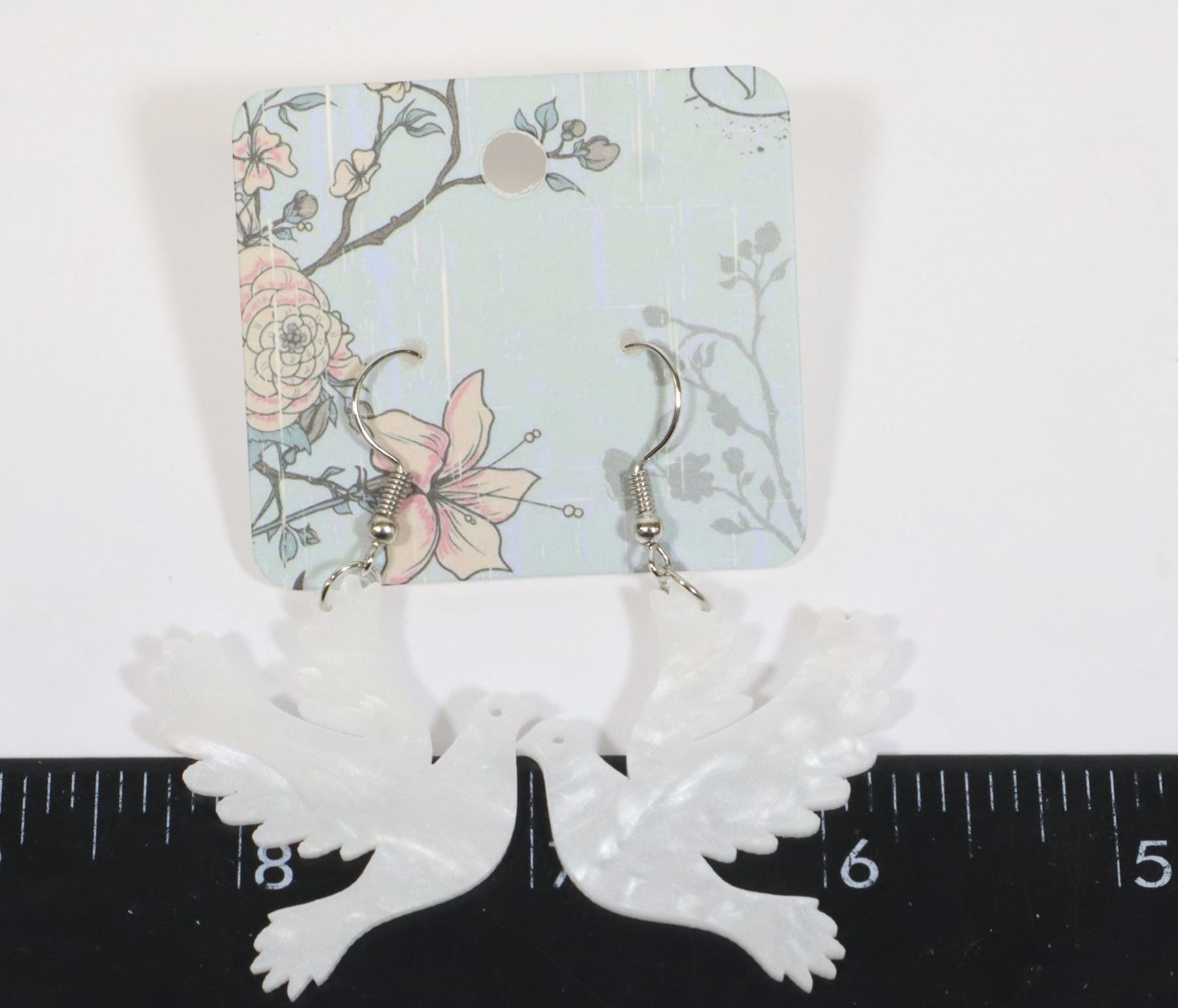 NEW IRIDESCENT ACRYLIC DOVE DROP EARRINGS