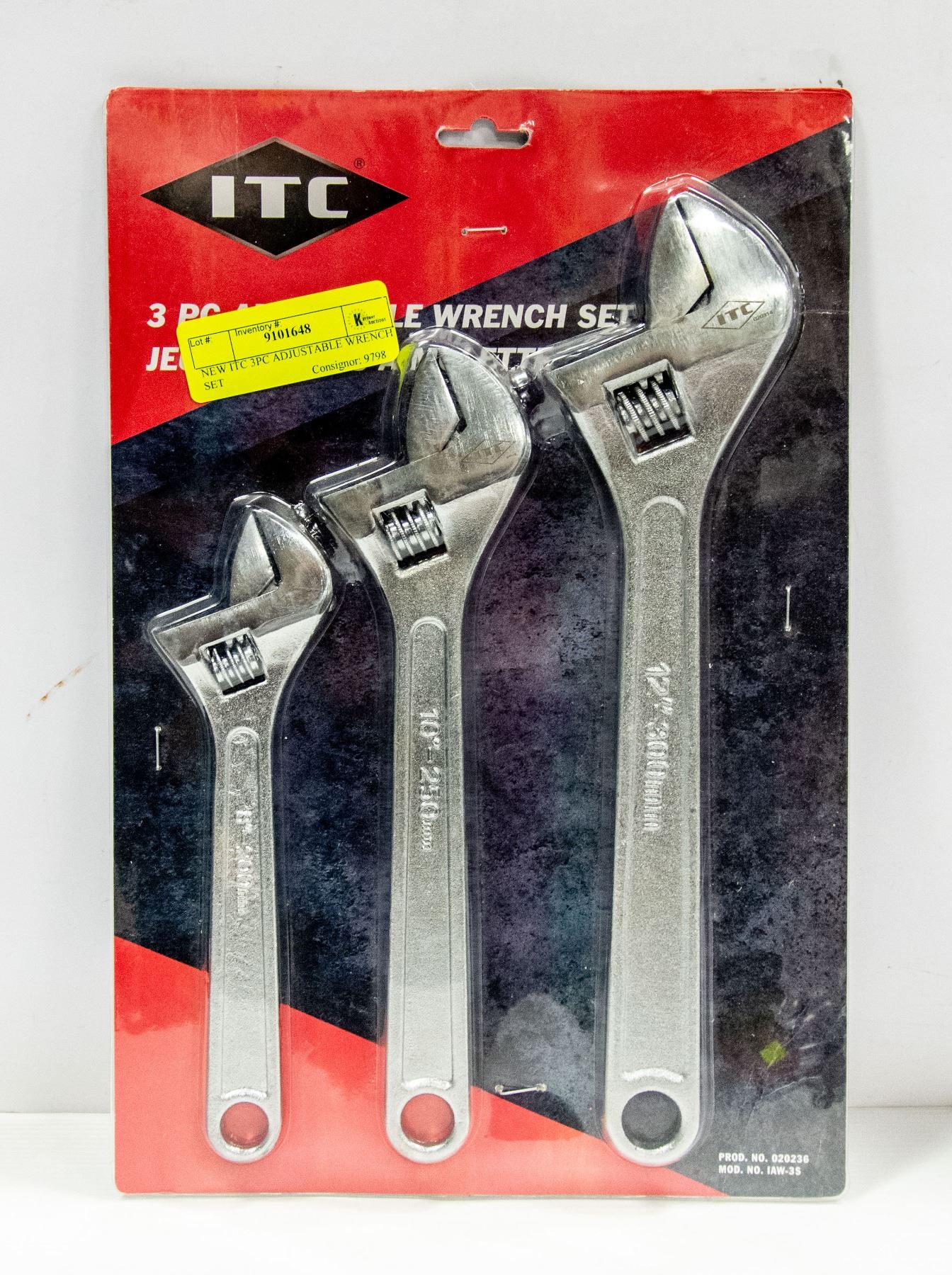 NEW ITC 3PC ADJUSTABLE WRENCH SET