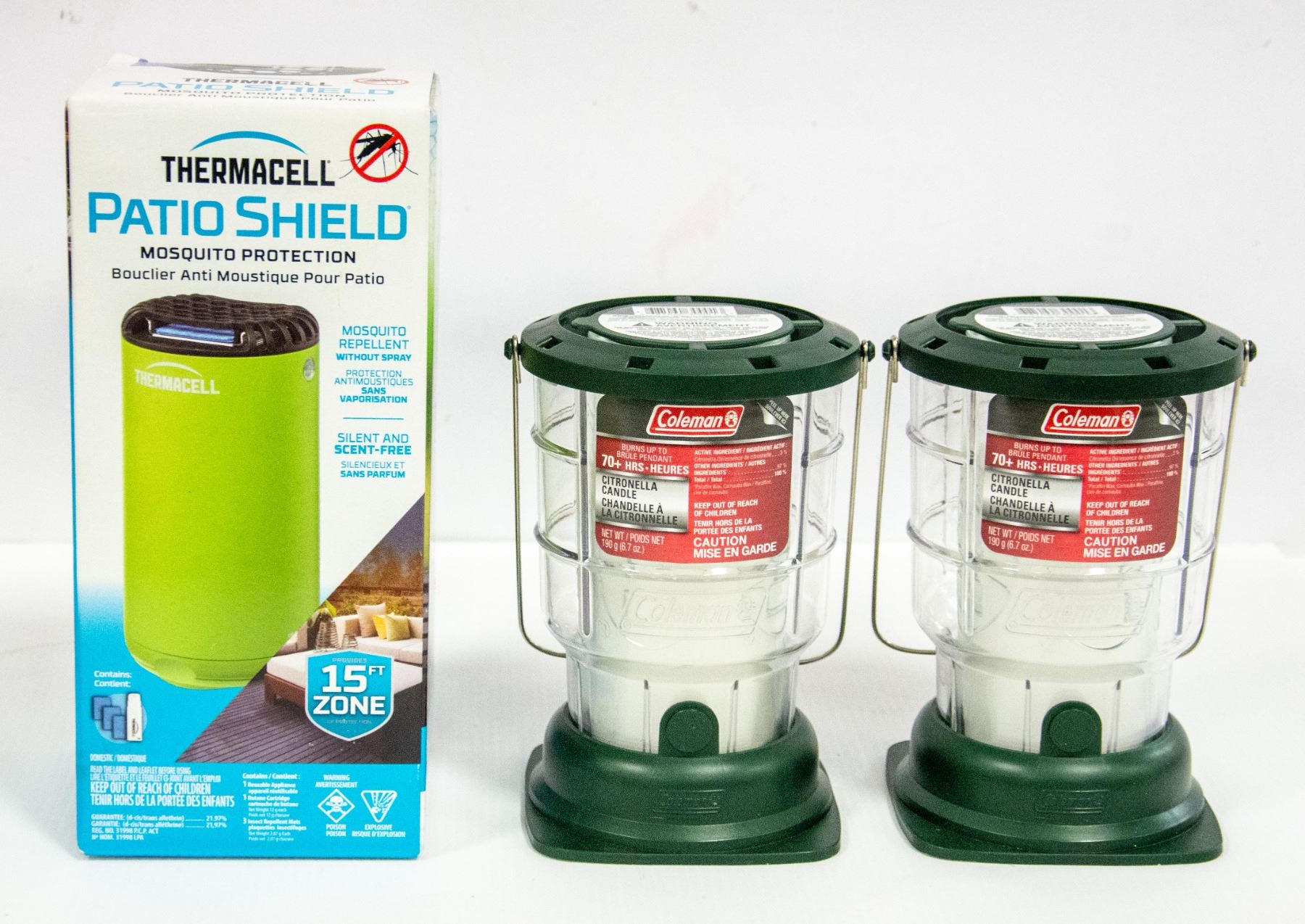 CANDLES 70 HOURS PLUS W/THERMACELL PATIO SHIELD MOSQUITO PROTECTION 15 FT ZONE