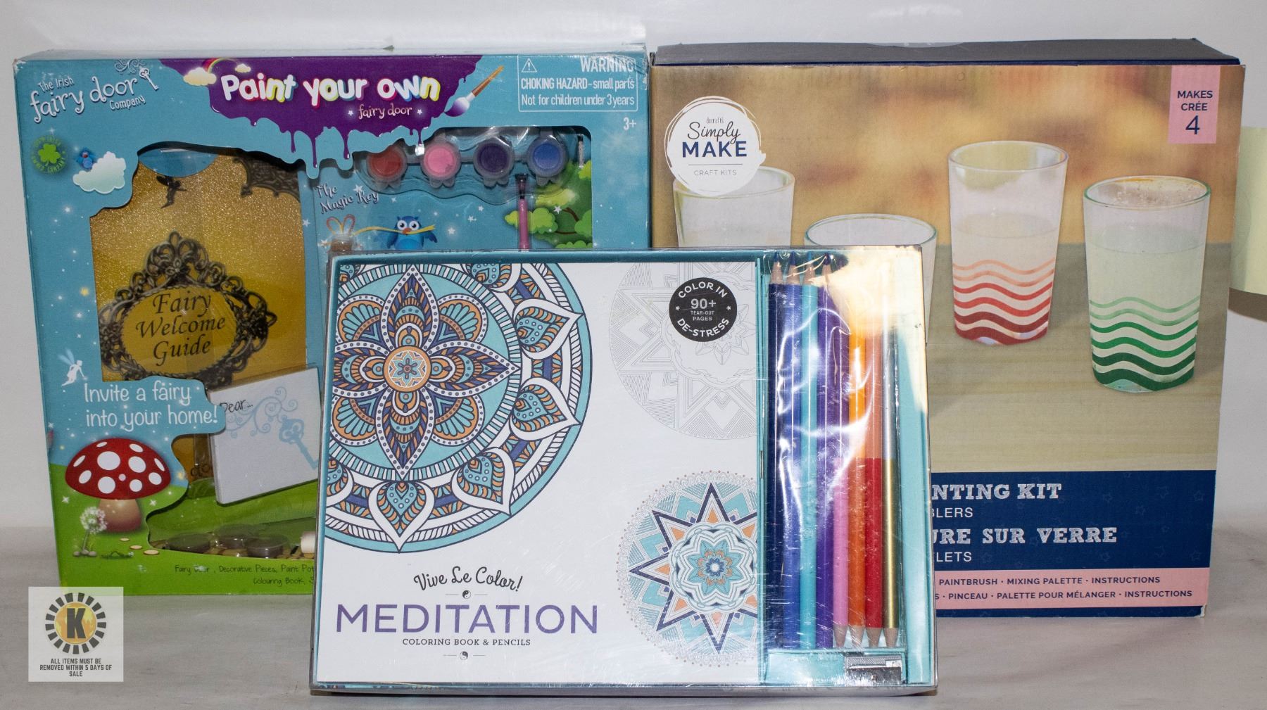 PAINTING TUMBLERS KIT, PAINT YOUR OWN FAIRY DOOR & VIVE LE COLOR MEDITATION COLORING BOOK & PENCILS **ALL ITEMS MUST BE REMOVED BY 5PM SATURDAY, APRIL 26TH 2025. ALL REMAINING ITEMS WILL BE SUBJECT TO A $6.00 PER DAY STORAGE CHARGE. ANY ITEMS REMAINING AFTER MONDAY, MAY 12TH 2025 WILL BE CONSIDERED FORFEITED. NO REFUNDS WILL BE ISSUED FOR FORFEITED ITEMS. TO SCHEDULE A PICK UP APPOINTMENT CLICK HERE