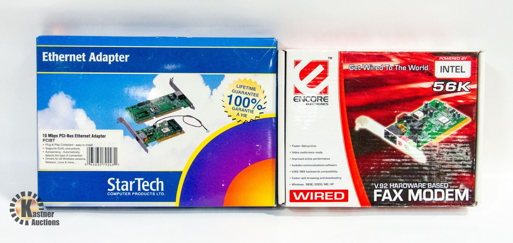 56 K USB V.92 HARDWARE BASED MODERM #EN656-EHW & STARTECH COMPUTER ETHERNET ADAPTER 10 MBPS PCI-BUS PCIBT **ALL ITEMS MUST BE REMOVED BY 5PM SATURDAY, JULY 15TH 2023. ALL REMAINING ITEMS WILL BE SUBJECT TO A $6.00 PER DAY STORAGE CHARGE. ANY ITEMS REMAINING AFTER MONDAY, JULY 31ST, 2023 WILL BE CONSIDERED FORFEITED. NO REFUNDS WILL BE ISSUED FOR FORFEITED ITEMS. TO SCHEDULE A PICK UP APPOINTMENT CLICK HERE