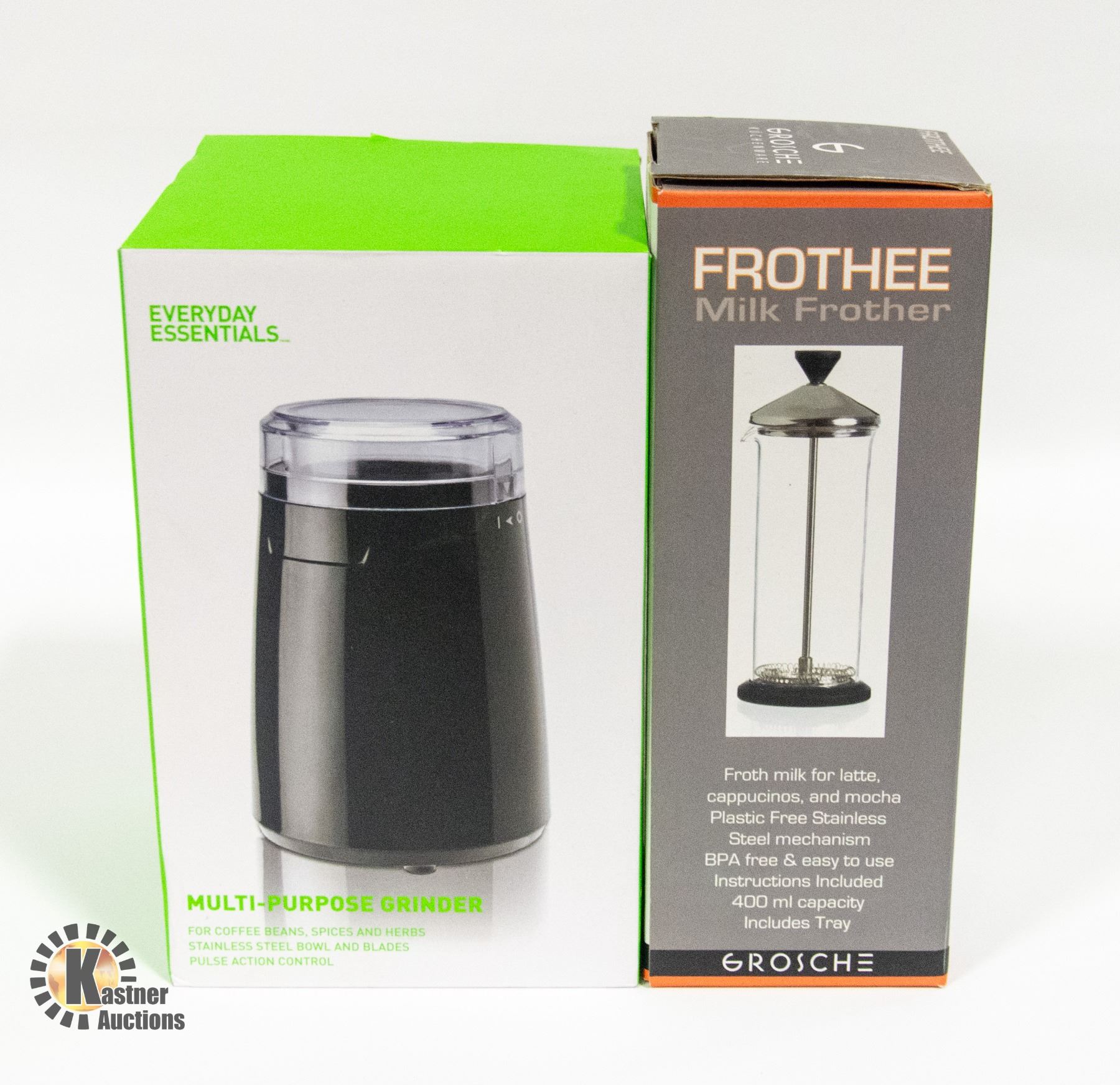 MULTI-PURPOSE GRINDER & GROSCHE FROTHEE MILK FROTHER LATTE, CAPPUCCINO'S ETC. **ALL ITEMS MUST BE REMOVED BY 5PM SATURDAY, NOVEMBER 30TH 2024. ALL REMAINING ITEMS WILL BE SUBJECT TO A $6.00 PER DAY STORAGE CHARGE. ANY ITEMS REMAINING AFTER MONDAY, DECEMBER 16TH 2024 WILL BE CONSIDERED FORFEITED. NO REFUNDS WILL BE ISSUED FOR FORFEITED ITEMS. TO SCHEDULE A PICK UP APPOINTMENT CLICK HERE