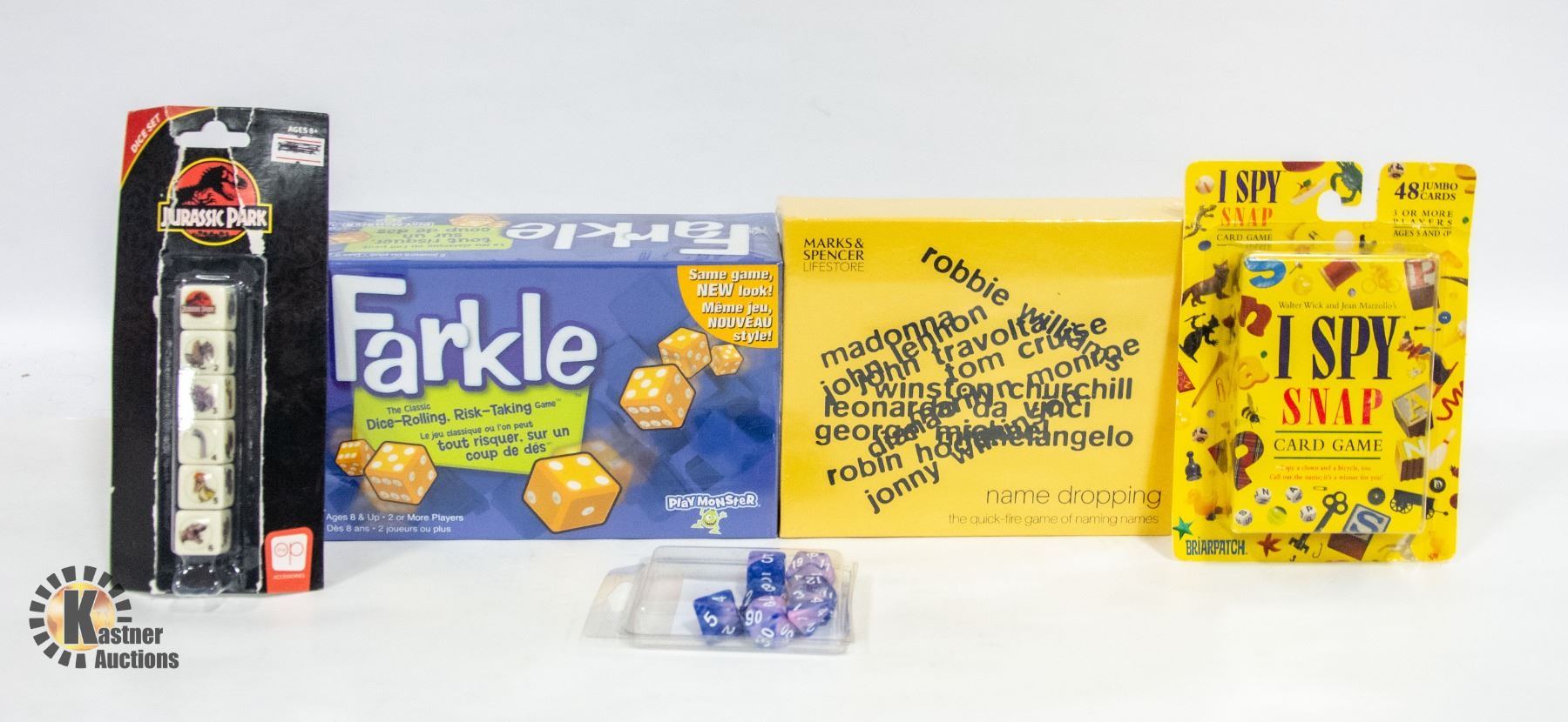 GAME, TMG DARGON'S DICE 16MM 7-PC'S, JURASSIC PARK DICE SET, ISPYSNAP CARD GAME & MORE **ALL ITEMS MUST BE REMOVED BY 5PM SATURDAY, DECEMBER 2ND 2023. ALL REMAINING ITEMS WILL BE SUBJECT TO A $6.00 PER DAY STORAGE CHARGE. ANY ITEMS REMAINING AFTER MONDAY, DECEMBER 18TH, 2023 WILL BE CONSIDERED FORFEITED. NO REFUNDS WILL BE ISSUED FOR FORFEITED ITEMS. TO SCHEDULE A PICK UP APPOINTMENT CLICK HERE