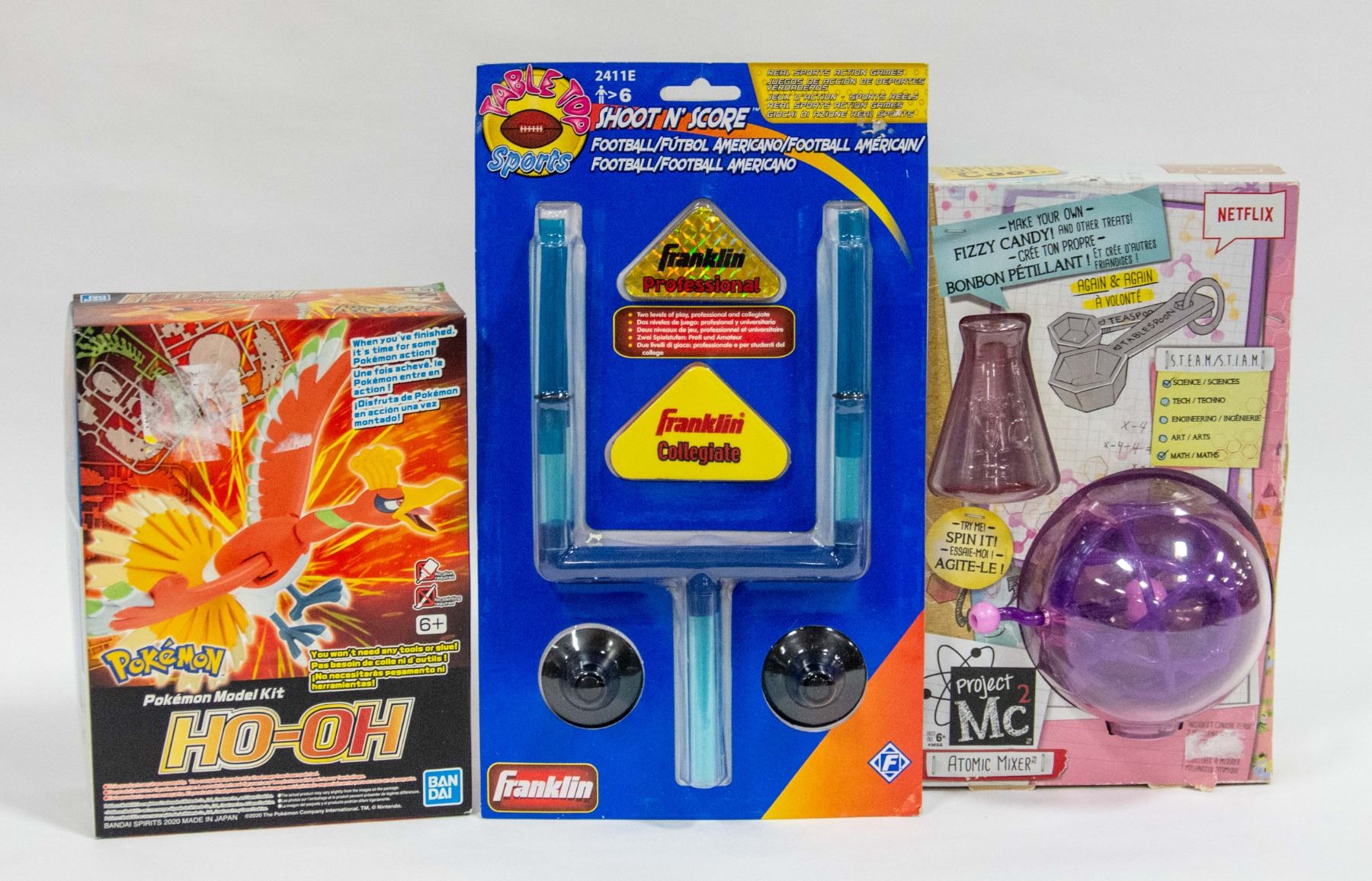 TOP SPORTS SHOOT N' SCORE, PROJECT MC2 ATOMIC MIXER & POKEMON HO-OH MODEL KIT **ALL ITEMS MUST BE REMOVED BY 5PM SATURDAY, MARCH 18TH 2023. ALL REMAINING ITEMS WILL BE SUBJECT TO A $6.00 PER DAY STORAGE CHARGE. ANY ITEMS REMAINING AFTER MONDAY, APRIL 3RD, 2023 WILL BE CONSIDERED FORFEITED. NO REFUNDS WILL BE ISSUED FOR FORFEITED ITEMS. TO SCHEDULE A PICK UP APPOINTMENT CLICK HERE