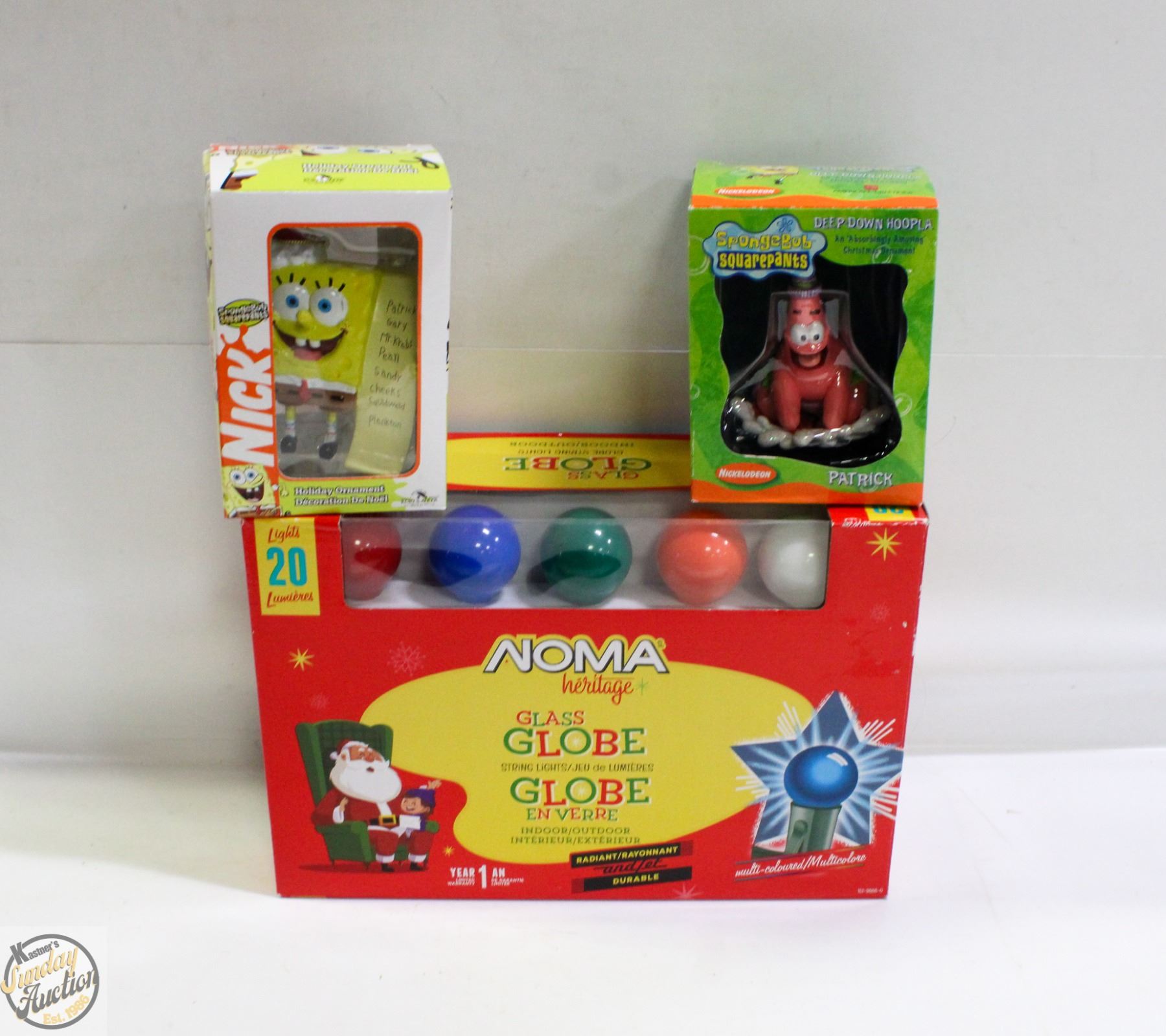 GLOBE STRING LIGHTS 20 LIGHTS W/2 NICKELODEAN SPONGEBOB SQUARE PANTS TREE ORANMENTS **ALL ITEMS MUST BE REMOVED BY 5PM SATURDAY, NOVEMBER 15TH 2025. ALL REMAINING ITEMS WILL BE SUBJECT TO A $6.00 PER DAY STORAGE CHARGE. ANY ITEMS REMAINING AFTER MONDAY, DECEMBER 1ST 2025 WILL BE CONSIDERED FORFEITED. NO REFUNDS WILL BE ISSUED FOR FORFEITED ITEMS. TO SCHEDULE A PICK UP APPOINTMENT CLICK HERE