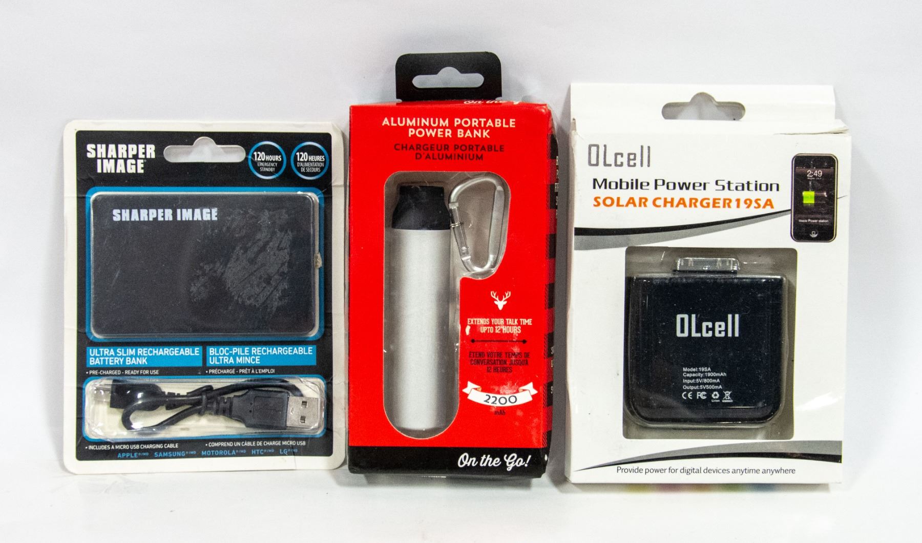POWER STATION SOLAR CHARGER 19SA W/ALUMINUM PORTABLE POWER BANK 2200 MAH W/SHARPERIMAGE SLIM RECHARGEABLE ULTRA BATTERY BANK **ALL ITEMS MUST BE REMOVED BY 5PM SATURDAY, MARCH 4TH 2023. ALL REMAINING ITEMS WILL BE SUBJECT TO A $6.00 PER DAY STORAGE CHARGE. ANY ITEMS REMAINING AFTER MONDAY, MARCH 20TH, 2023 WILL BE CONSIDERED FORFEITED. NO REFUNDS WILL BE ISSUED FOR FORFEITED ITEMS. TO SCHEDULE A PICK UP APPOINTMENT CLICK HERE