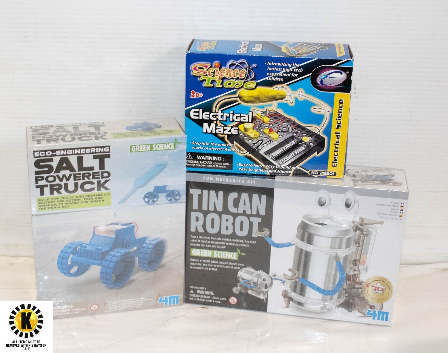 ELECTRICAL MAZE W/SEALED (2) 4M ECO-ENGINERRING SALT POWERED TRUCK & TIN CAN ROBOT