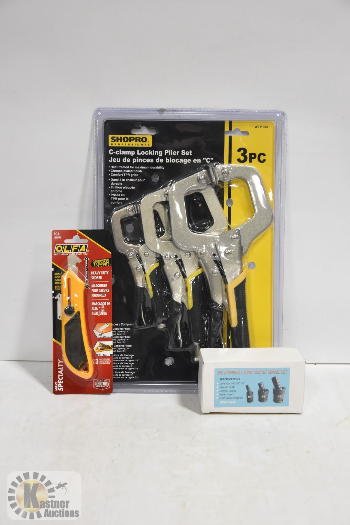 WELDING CLAMPS 3 PC W/3 PC UNIVERSAL JOINT SOCKET SET SWIVEL & OLFA CUTTER WITH 2 BLADES