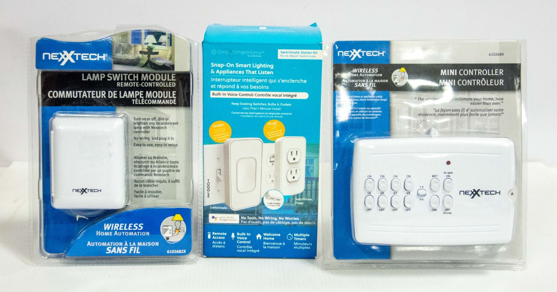 ON SMART LIGHTING SWITCH AND OUTLETS #SMV002 W/2 NEXXTECH WIRELESS LAMP SWITCH MODULE REMOTE CONTROLLED & WIRELESS MINI CONTROLLER UP TO 8 LAMPS