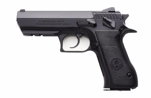 FAMILY:Jericho Series MODEL:Jericho F-9 TYPE:Semi-Auto Pistol ACTION:Semi-Auto FINISH:Black STOCK/FRAME:Steel Frame STOCK/GRIPS:Polymer CALIBER/GAUGE:9mm CAPACITY:16+1 # OF MAGS:2 MAGAZINE DESC:16 rd. BARREL:4.4" OVERALL LENGTH:7.6" SIGHTS: Adjustable ADDL INFO:Carry Case